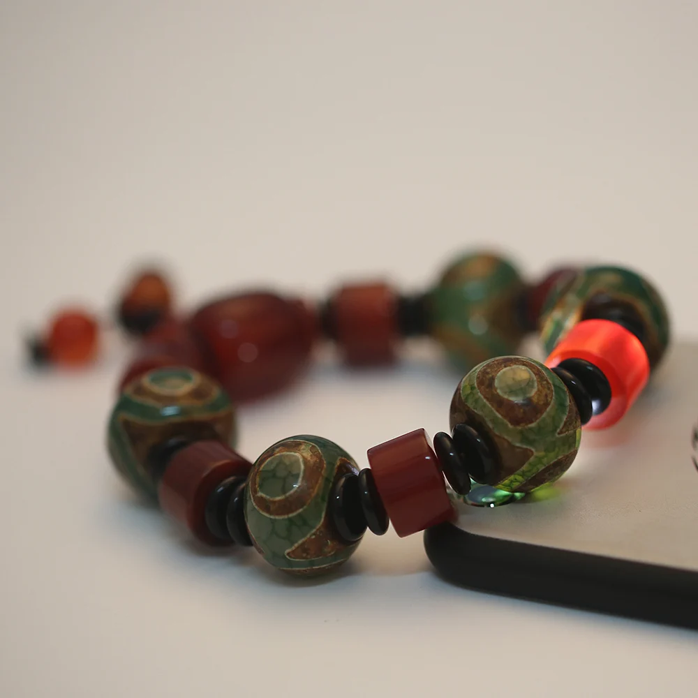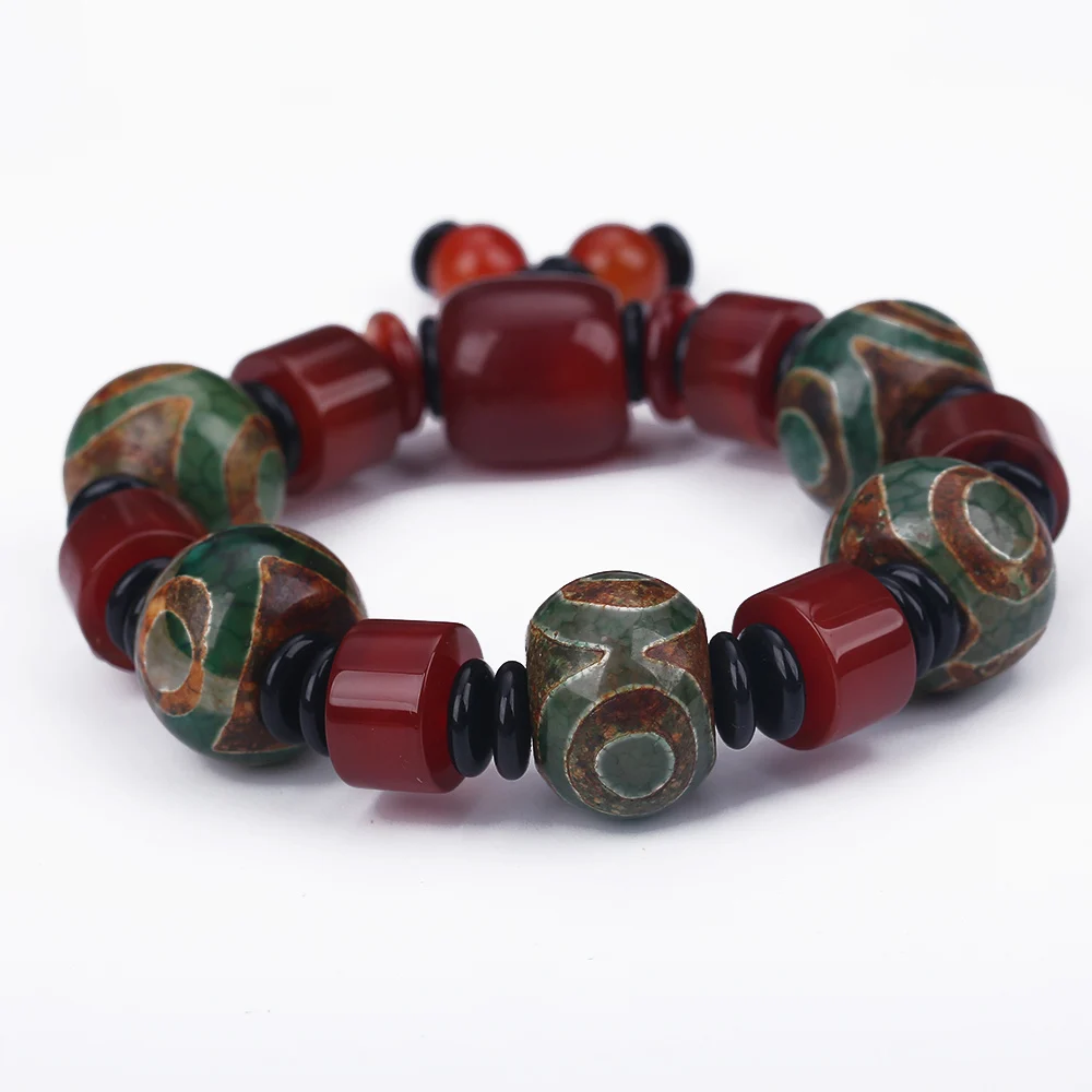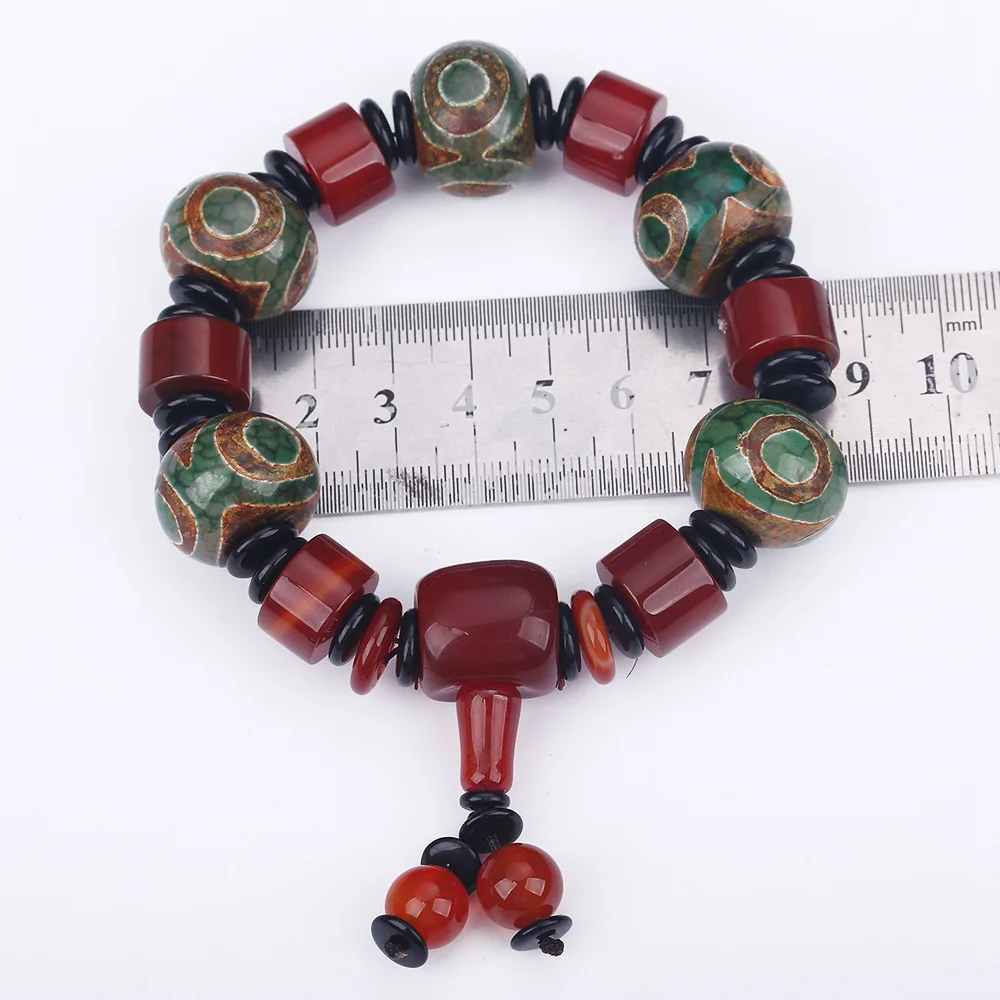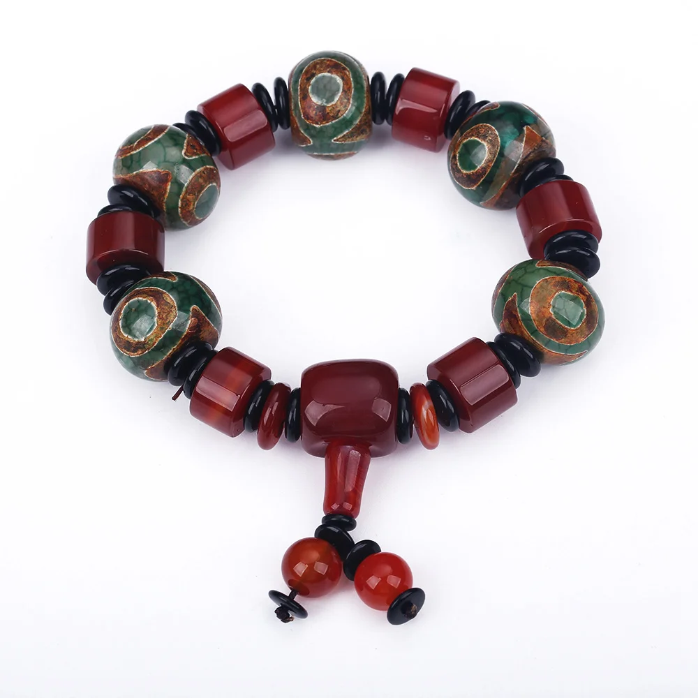 Forkup Red Crystal Bracelets Agate Stone Jewellery Tibetan Dzi Beads Hand Chain Beaded Accessories Hyperbole Male Round Spacer