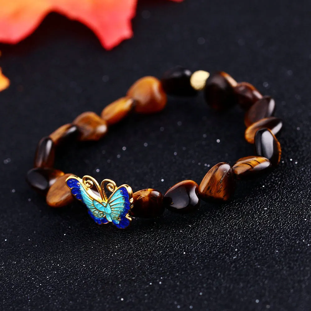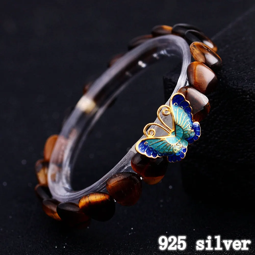 Forkup Tiger Eye Stone Bracelet Bohemia Women Power Wristlet Party 925 Silver Jewellery Geometric Simple Accessories Butterfly