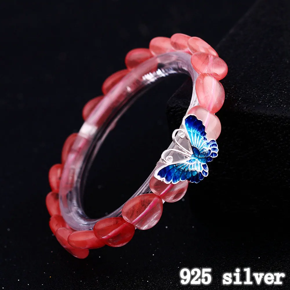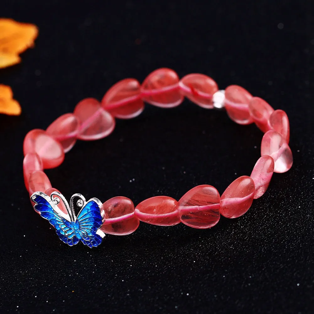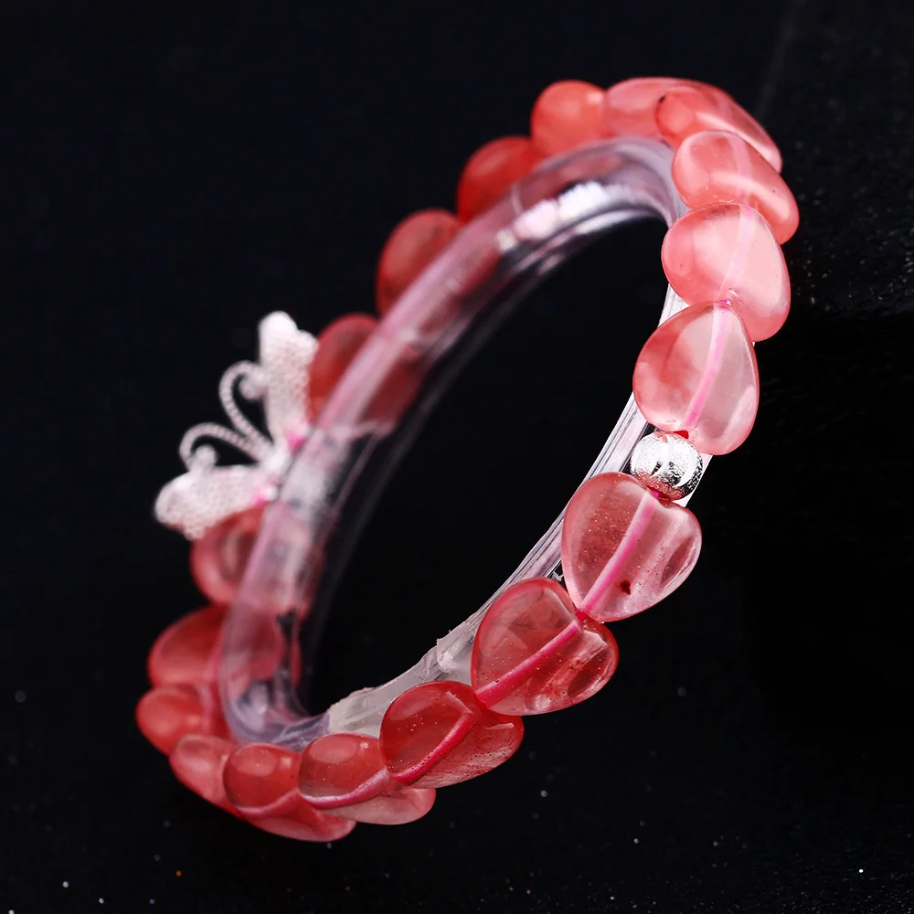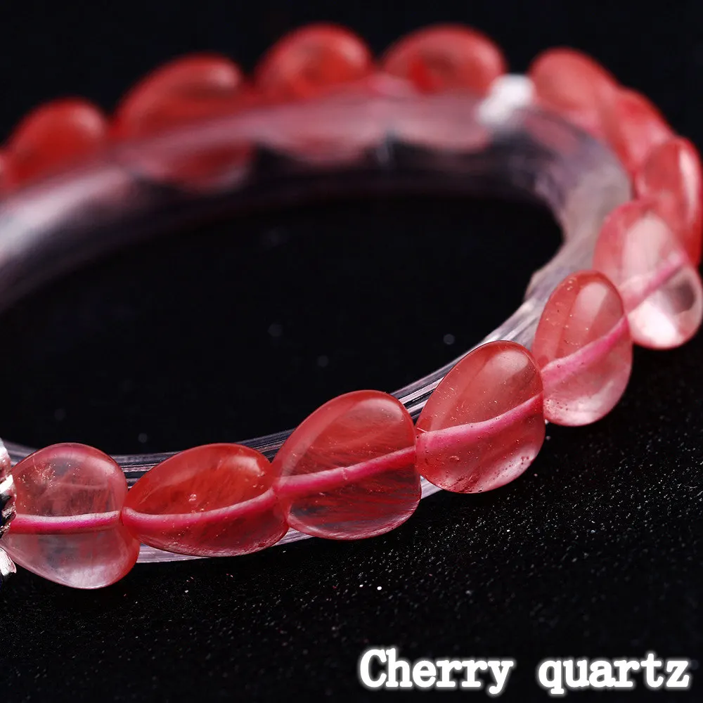 Forkup Women Bracelets Cherry Quartz Wristlet Heart Jewelry Red Crystal Hand Chain Casual Accessories Live Strong Yoga Amulet