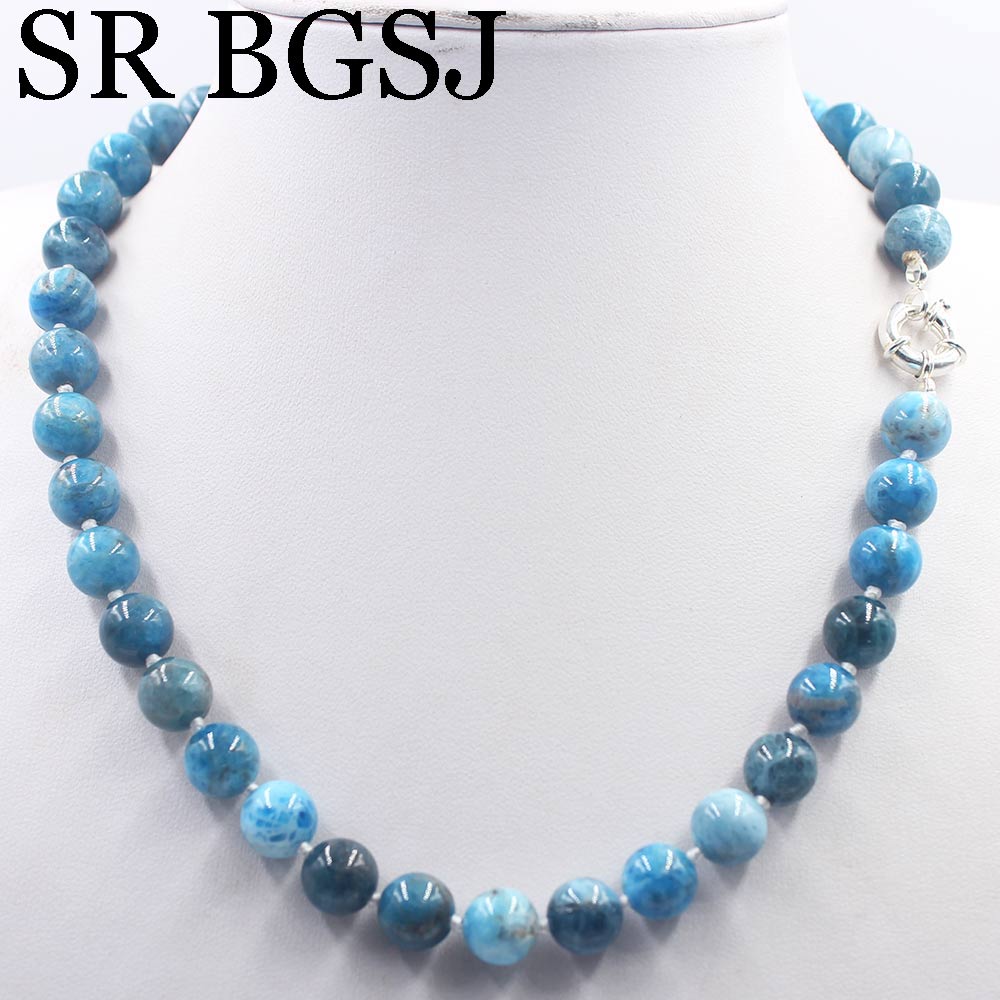 Free Ship 10mm Blue Apatite Round Gems Beads Knot Natural Stone Chocker Women Jewelry Necklace Strand 17.5inch