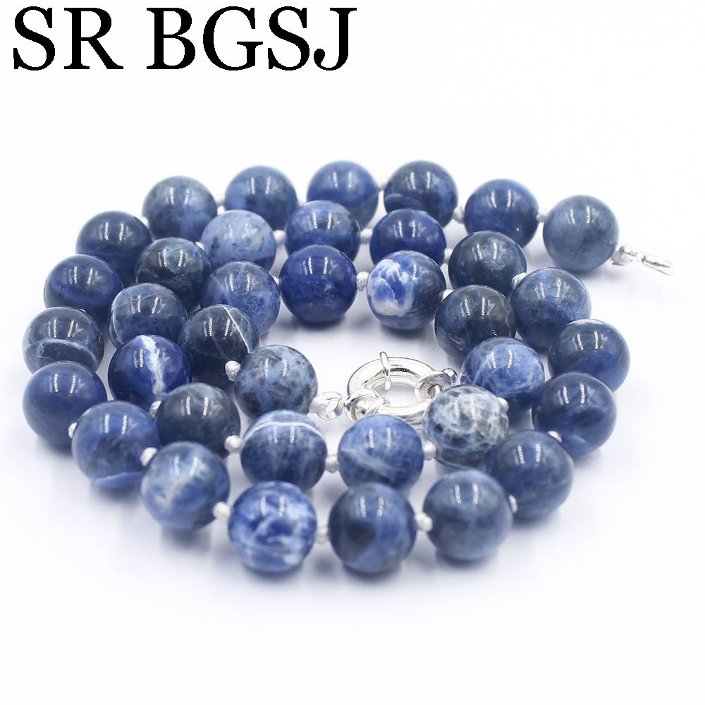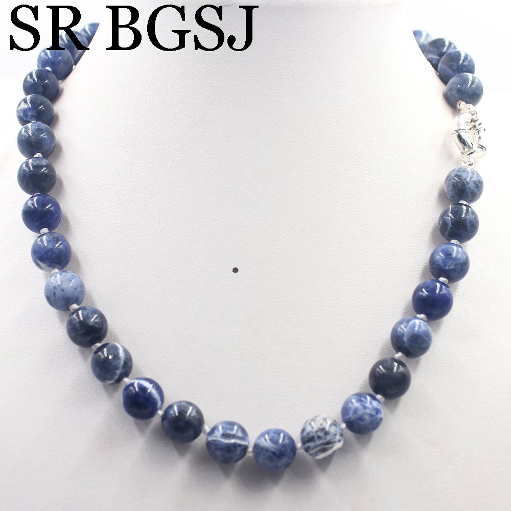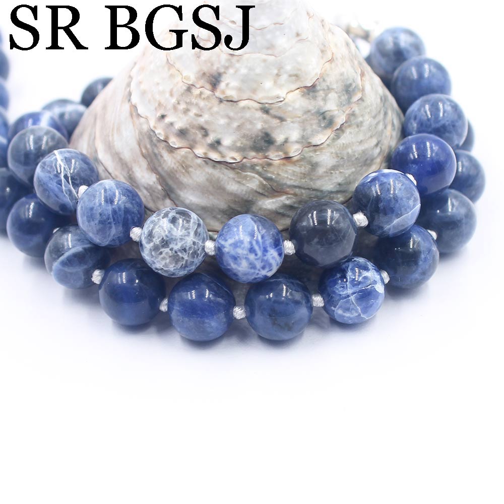 Free Ship 10mm Blue Sodalite Round Beads Knot Genuine Stone Chocker Women Jewelry Necklace Strand 17.5"