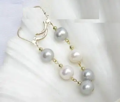 Free shipping 9-10mm AAA gary white Pearl Earrings 14K/20 YELLOW HOOK