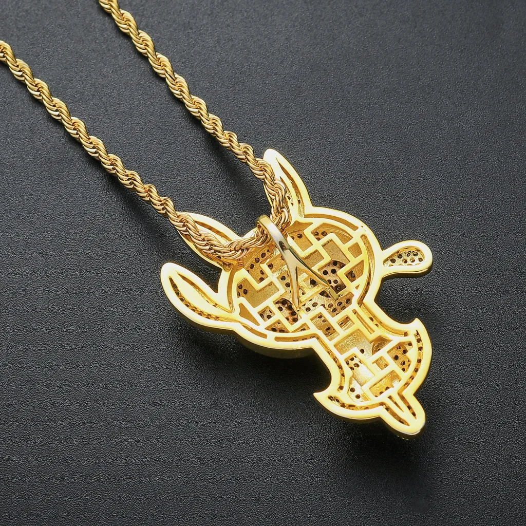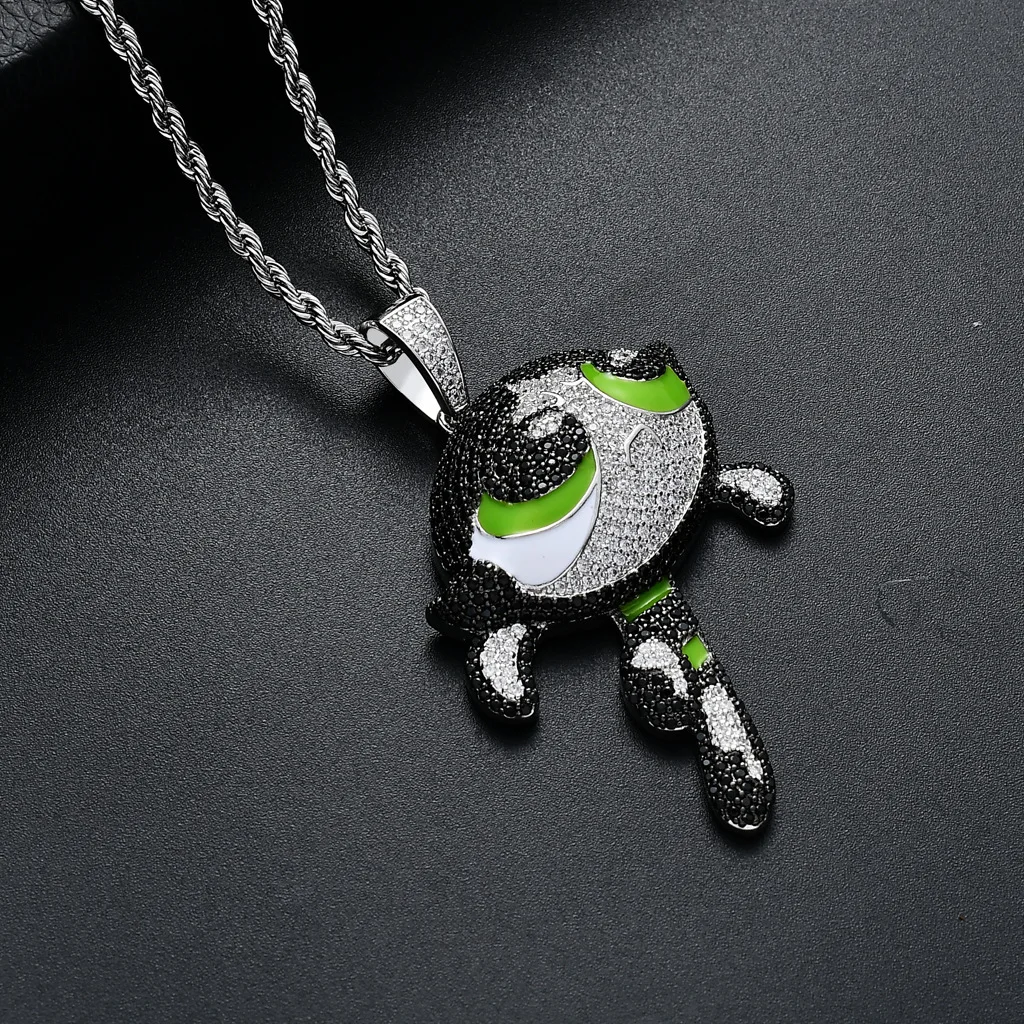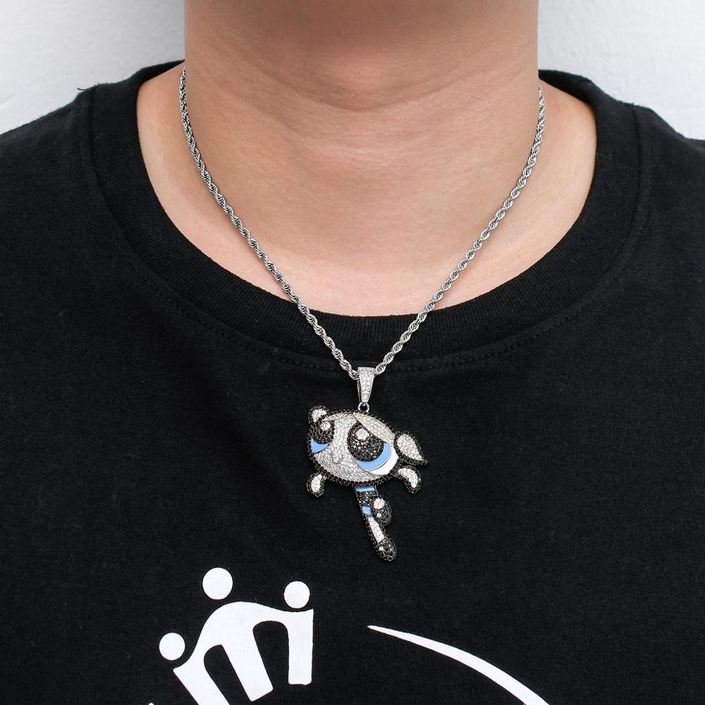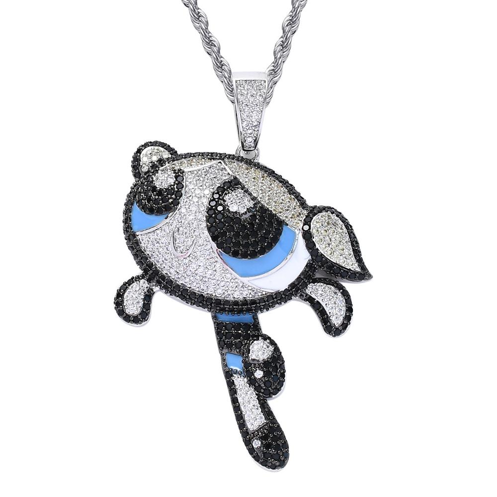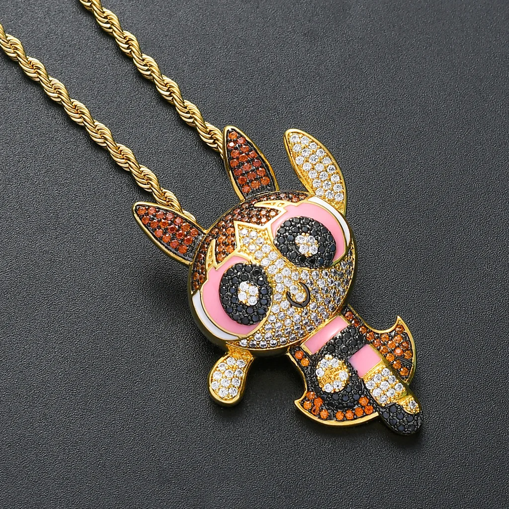 Freewear Powerpuff Girls Hiphop Jewelry Gold Micro Paved CZ Zircon Cartoon Character Blossom Pendant Necklace Iced Out Pendant