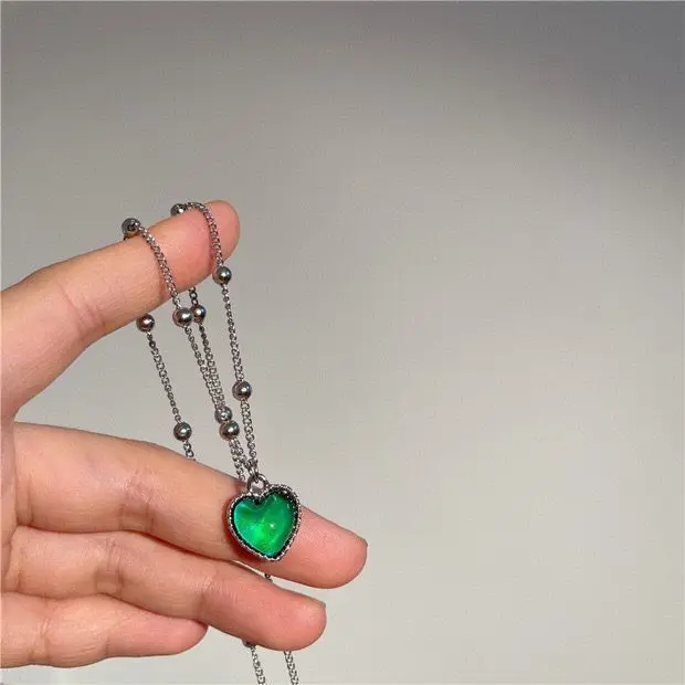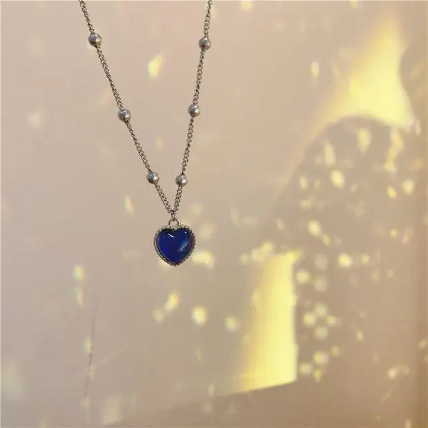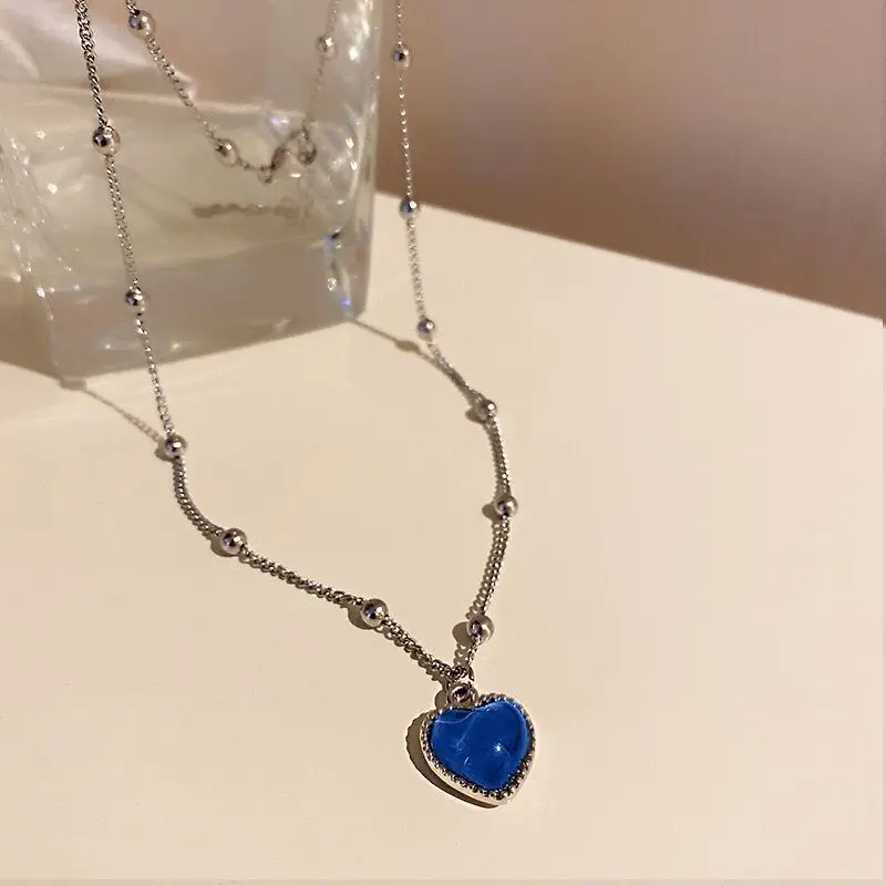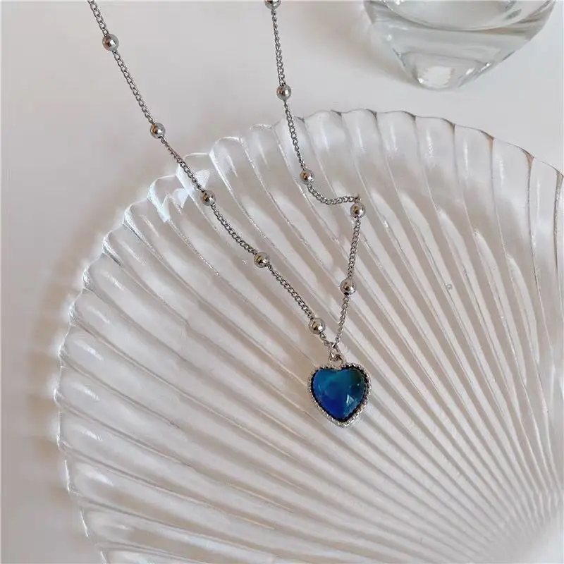 French Discolored Love Heart Pendant Necklace for Women Beaded Chain Choker Necklaces Accessories