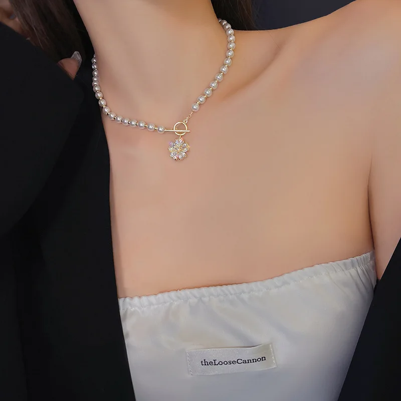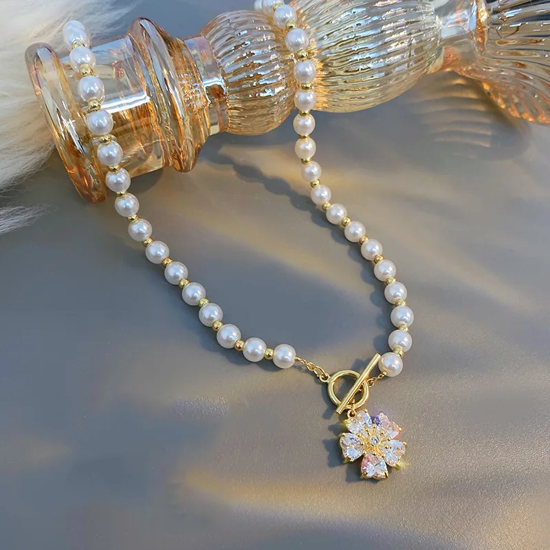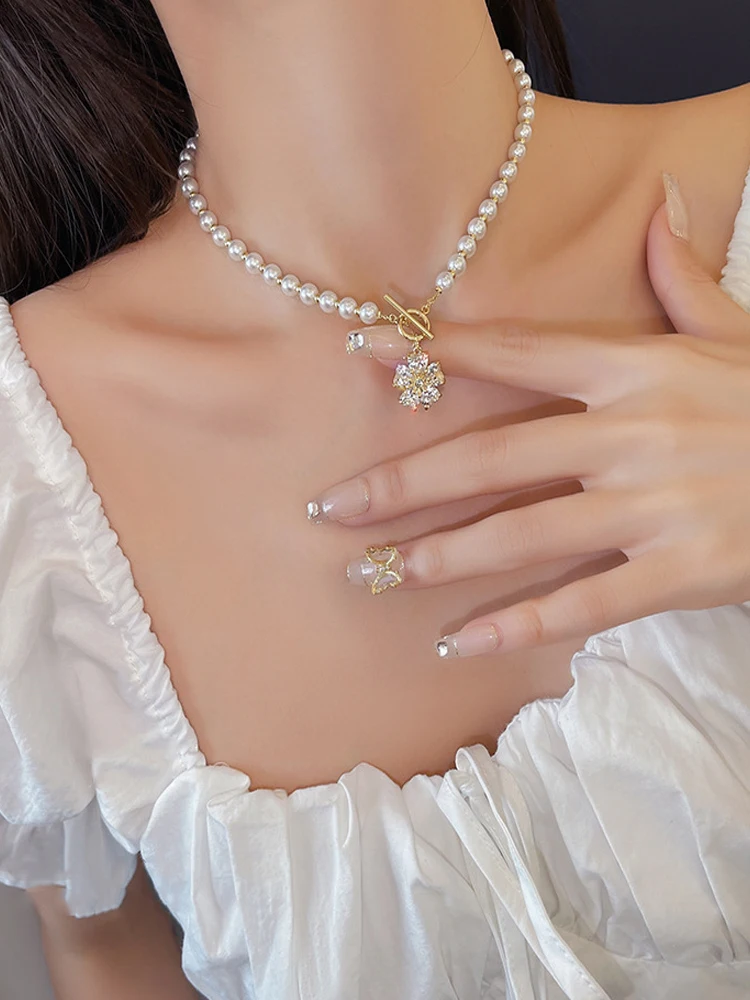 French Romantic Style Flowers Necklaces For Women Vintage Pearl Bohemian Design Clavicle Chain Dainty Simple Wedding Jewelry