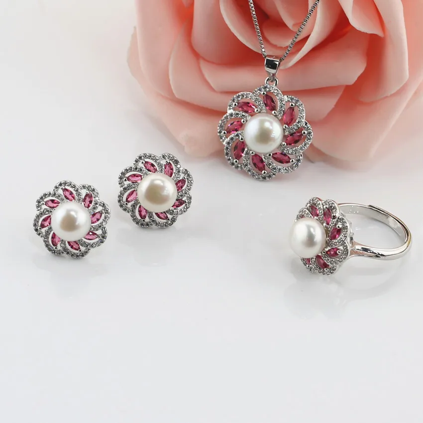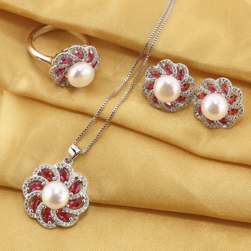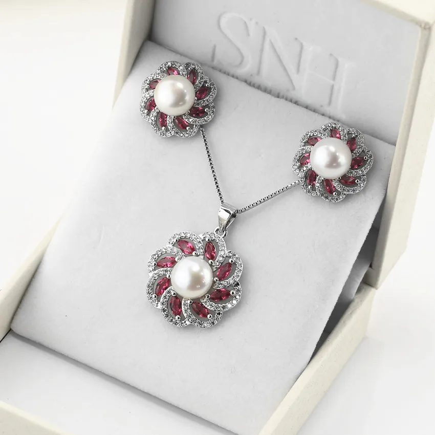 fresh water cultured 925 sterling silver bridal real pearl necklace and earring set natural pearl jewelry set