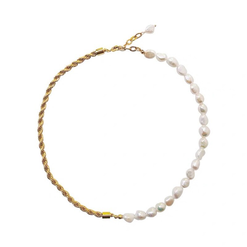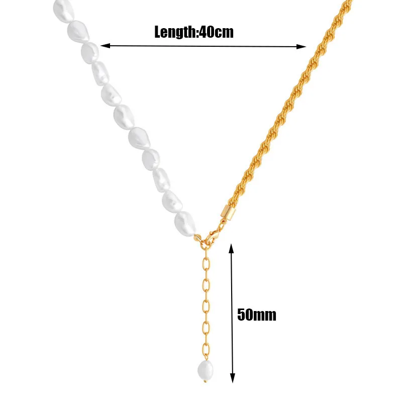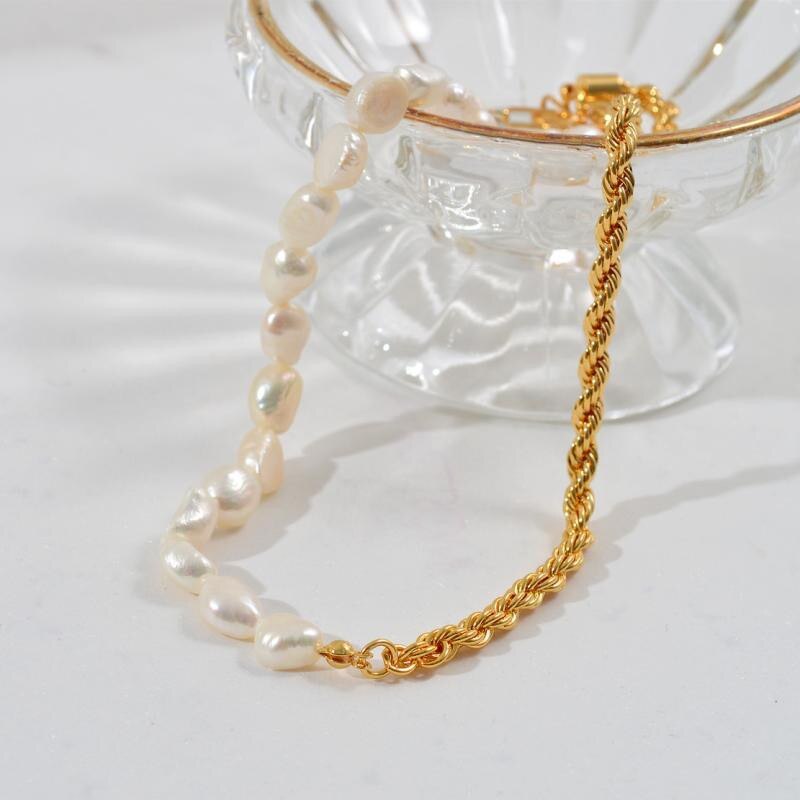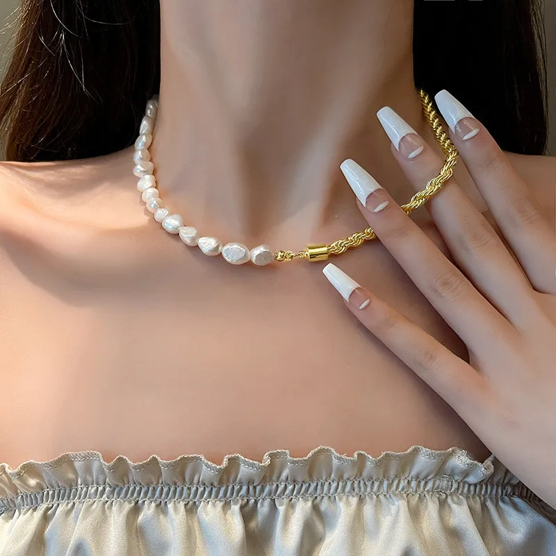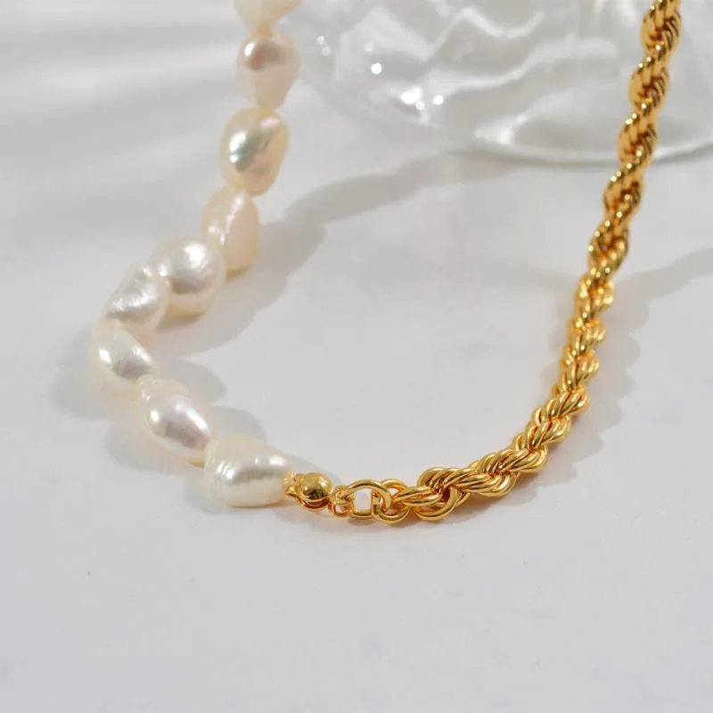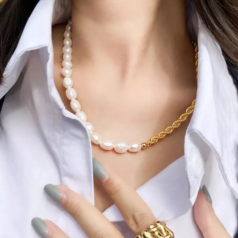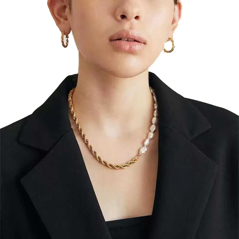 Freshwater Pearl Twist Chain Stitching Ladies Necklace Pearl Necklace For Gril With Pendant 316L Stainless Steel 18K Gold Filed