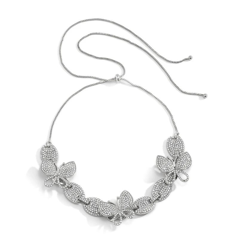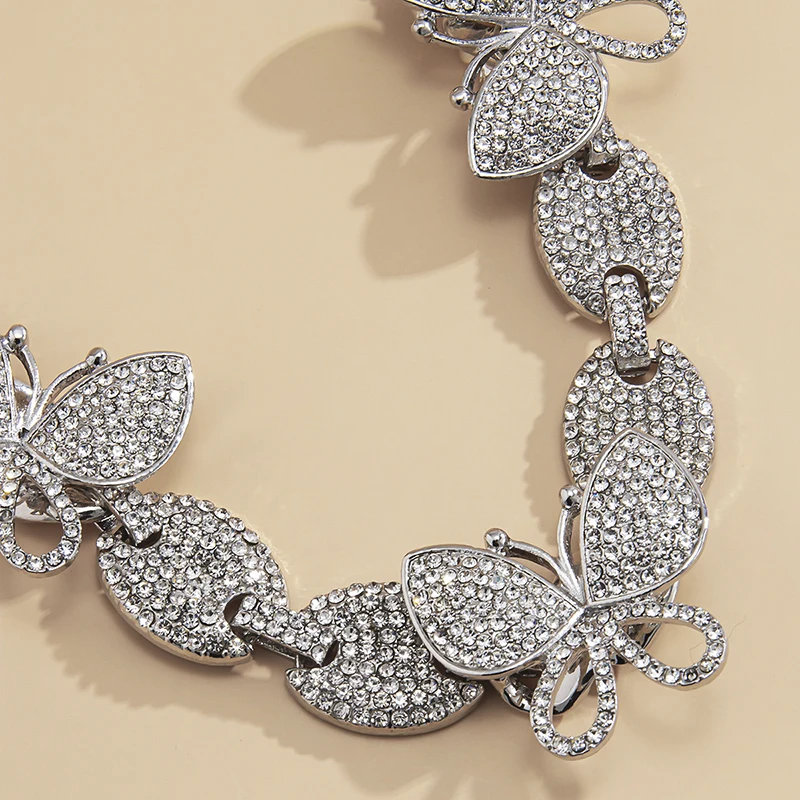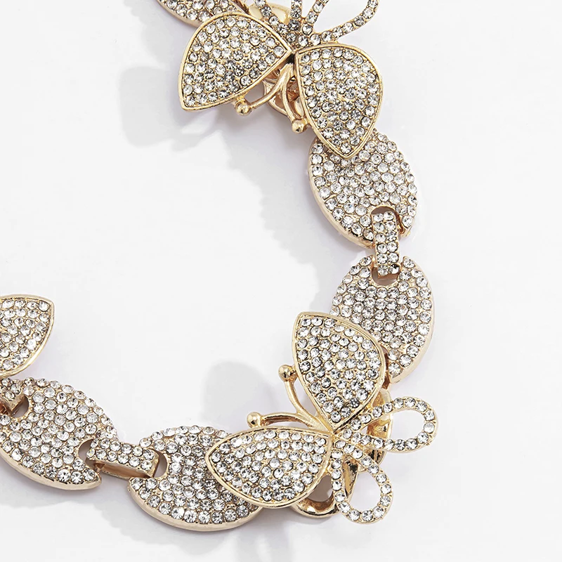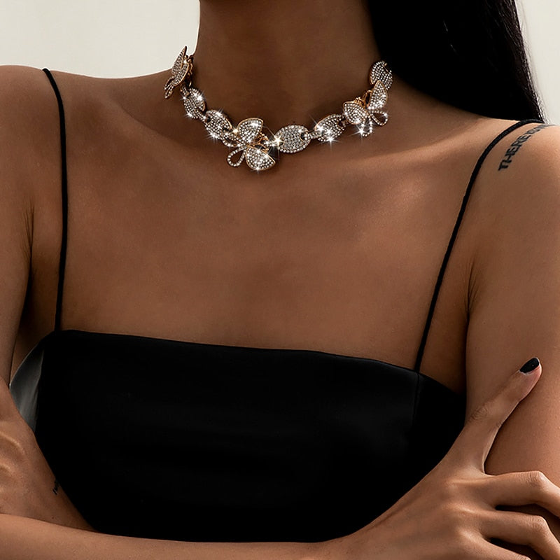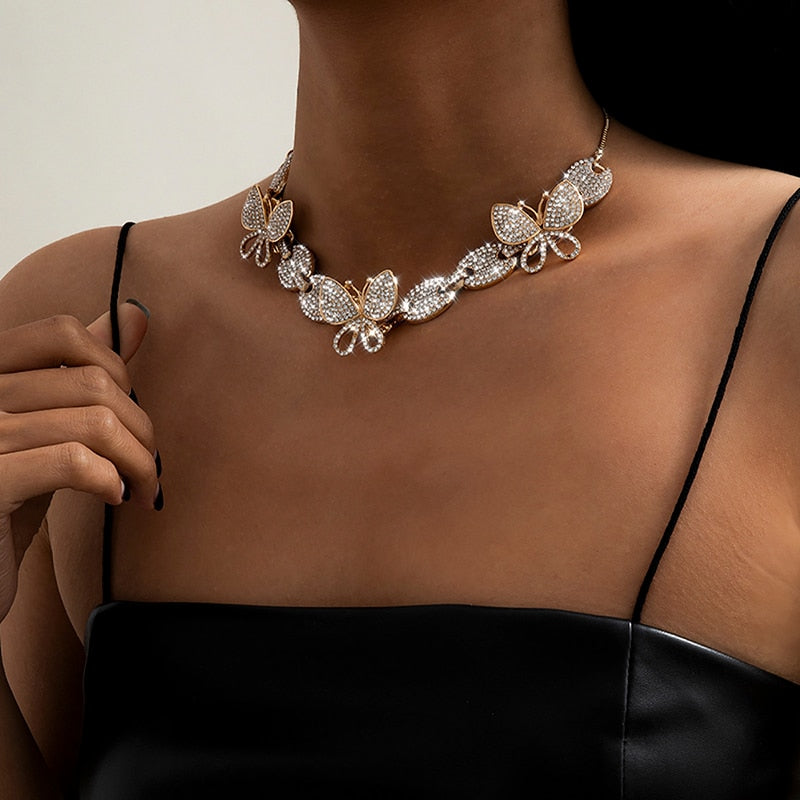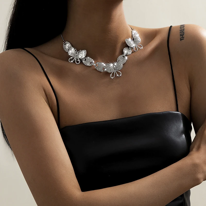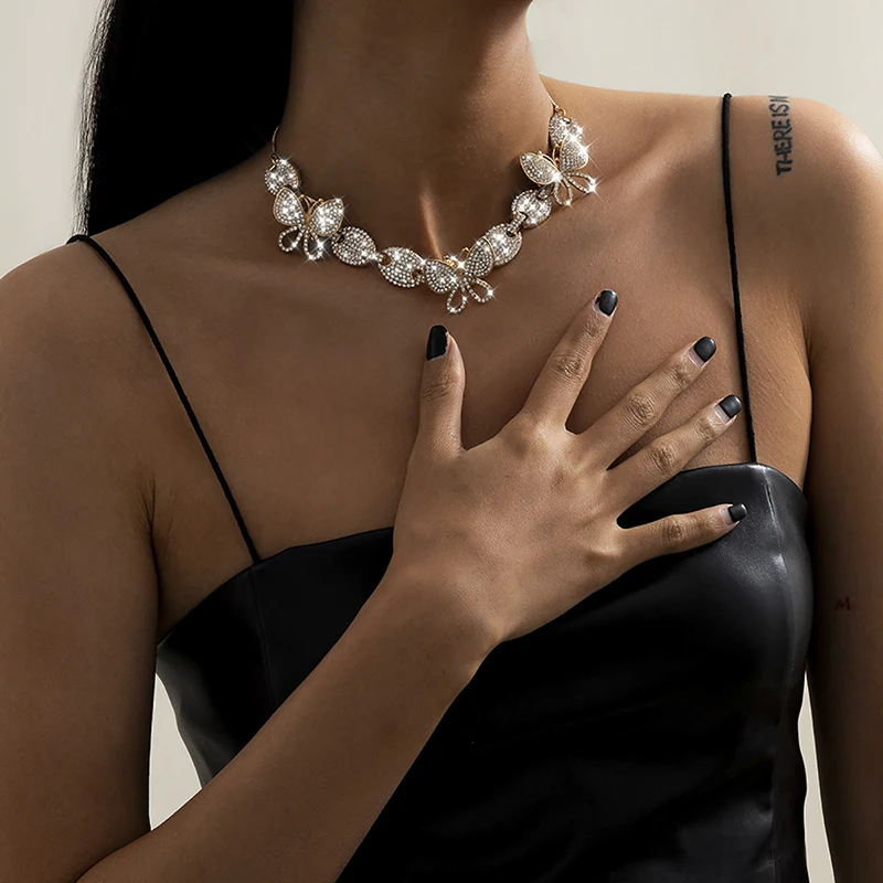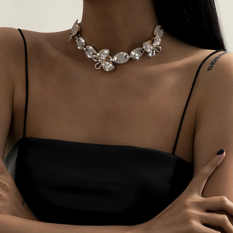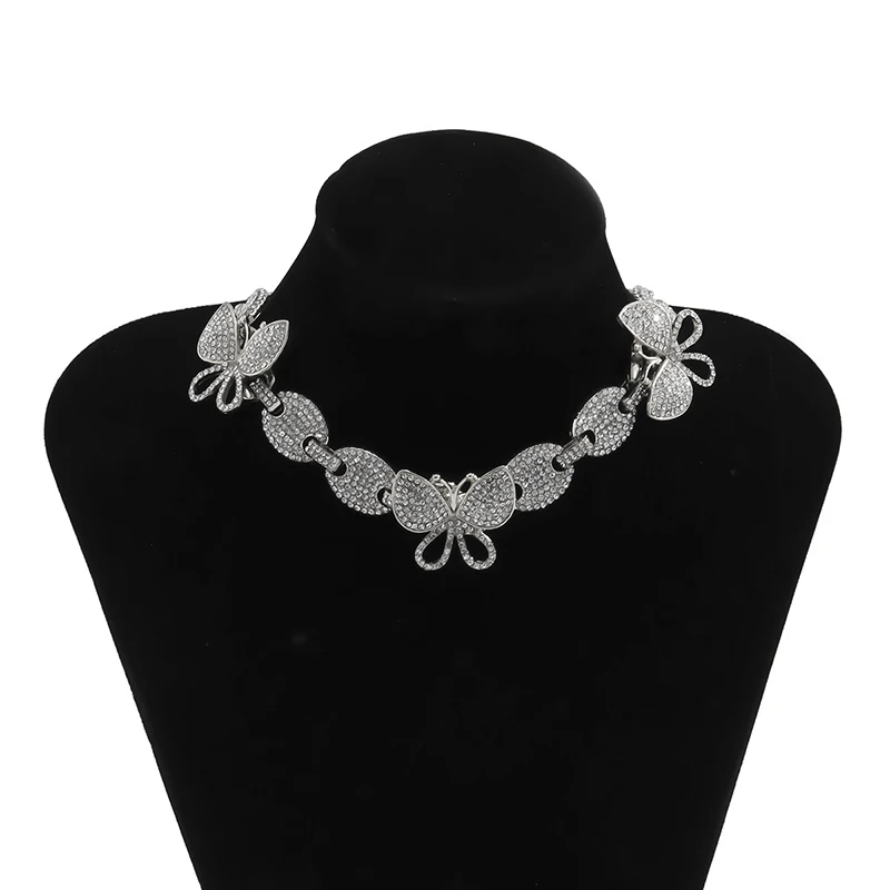 Full Diamond Cuban Buckle Chain Necklace Retro Temperament Micro Diamond Large Butterfly Necklace for Ladies