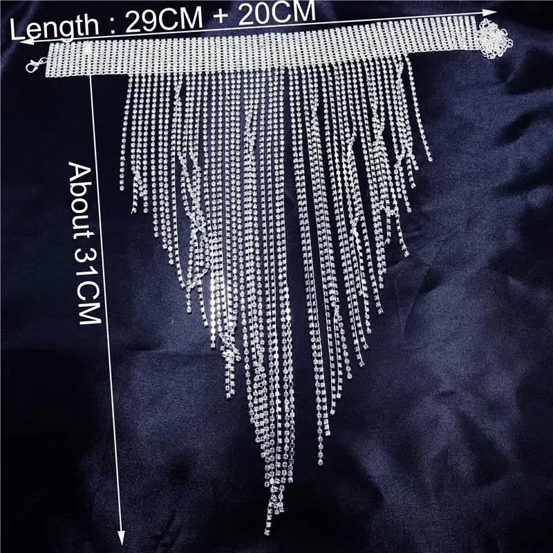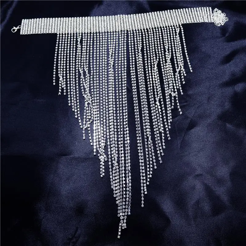 Full Rhinestone Chain Tassel Choker Necklace Women Maxi Long Necklace Pendants Jewelry Boho Ethnic Indian Large Necklace