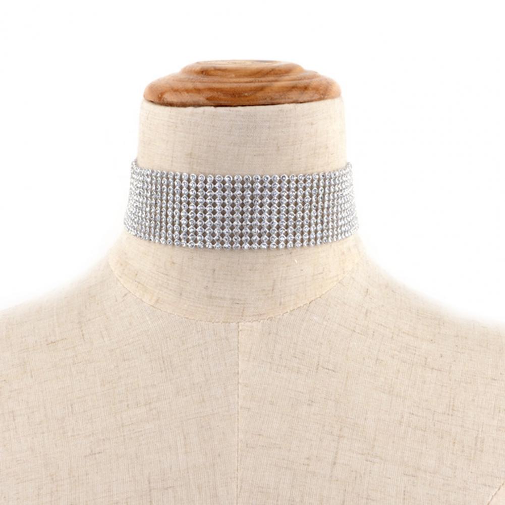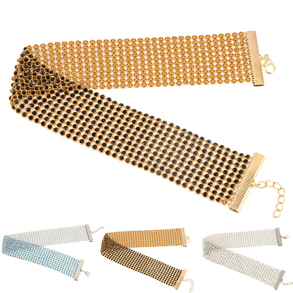 Full Rhinestone Wide Choker Collar Alloy Adjustable Gothic Choker Necklace Jewelry Gift