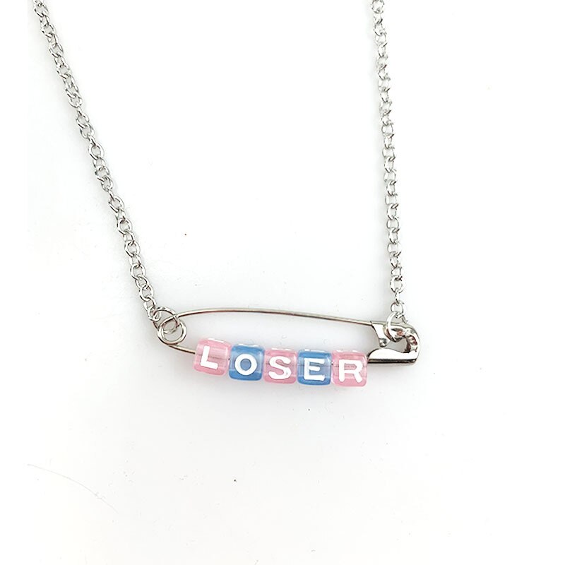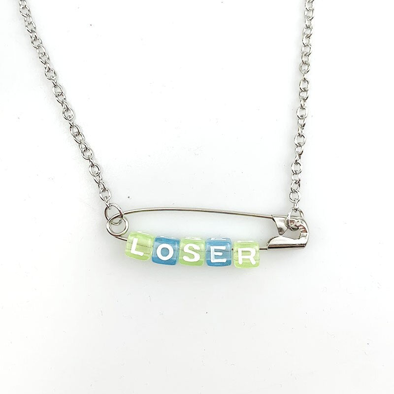 Funny Loser Letter Pins Cube Transparent Pendant Necklace For Women Girl Friends Cool Unique Punk Geometric Choker Necklace 2021