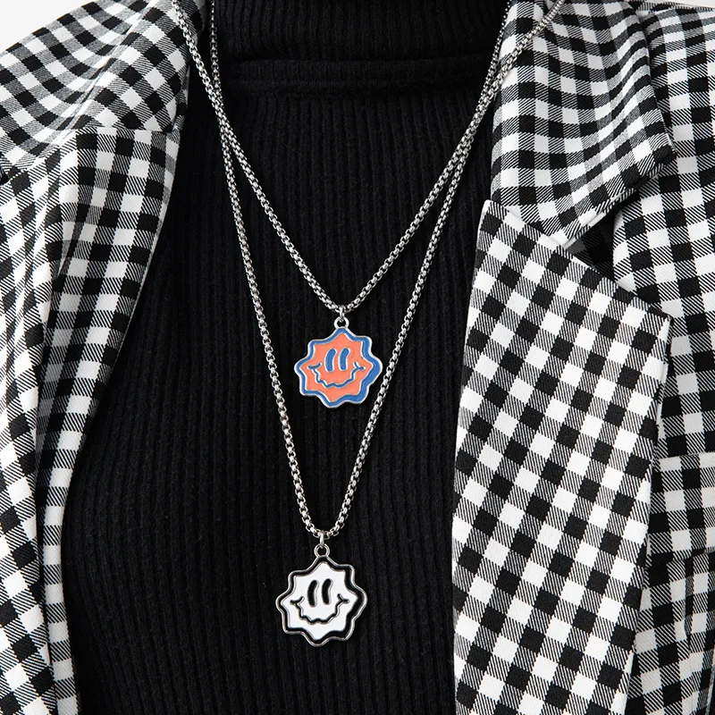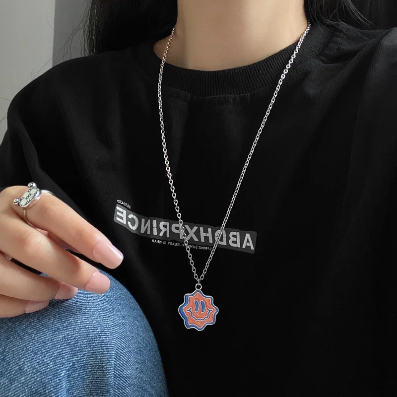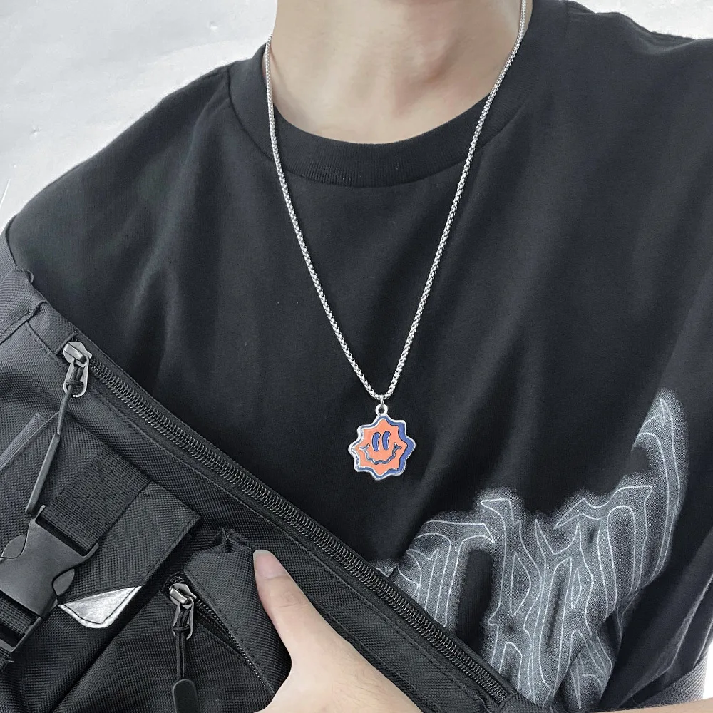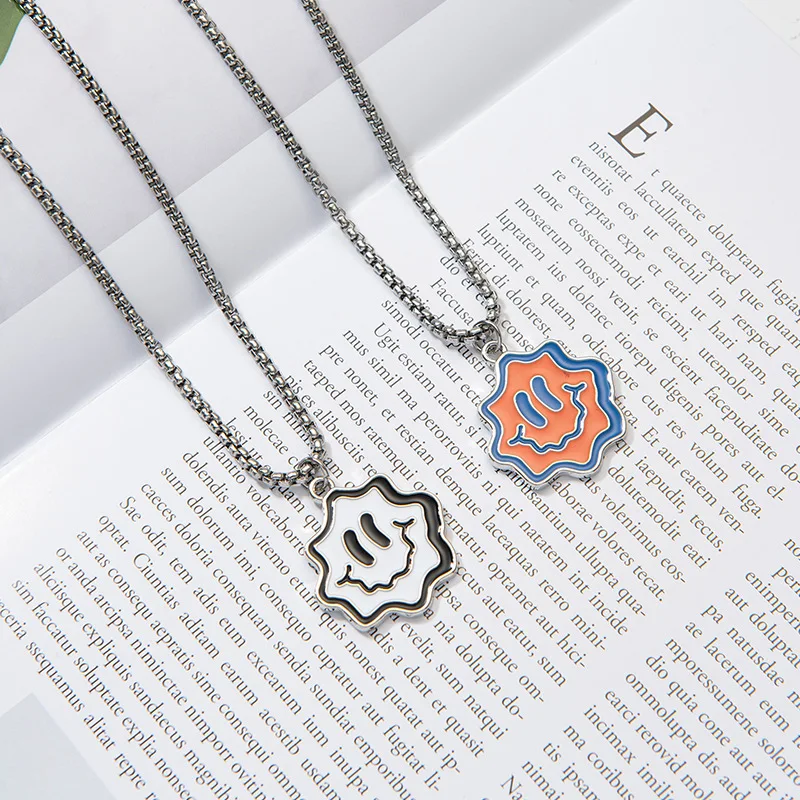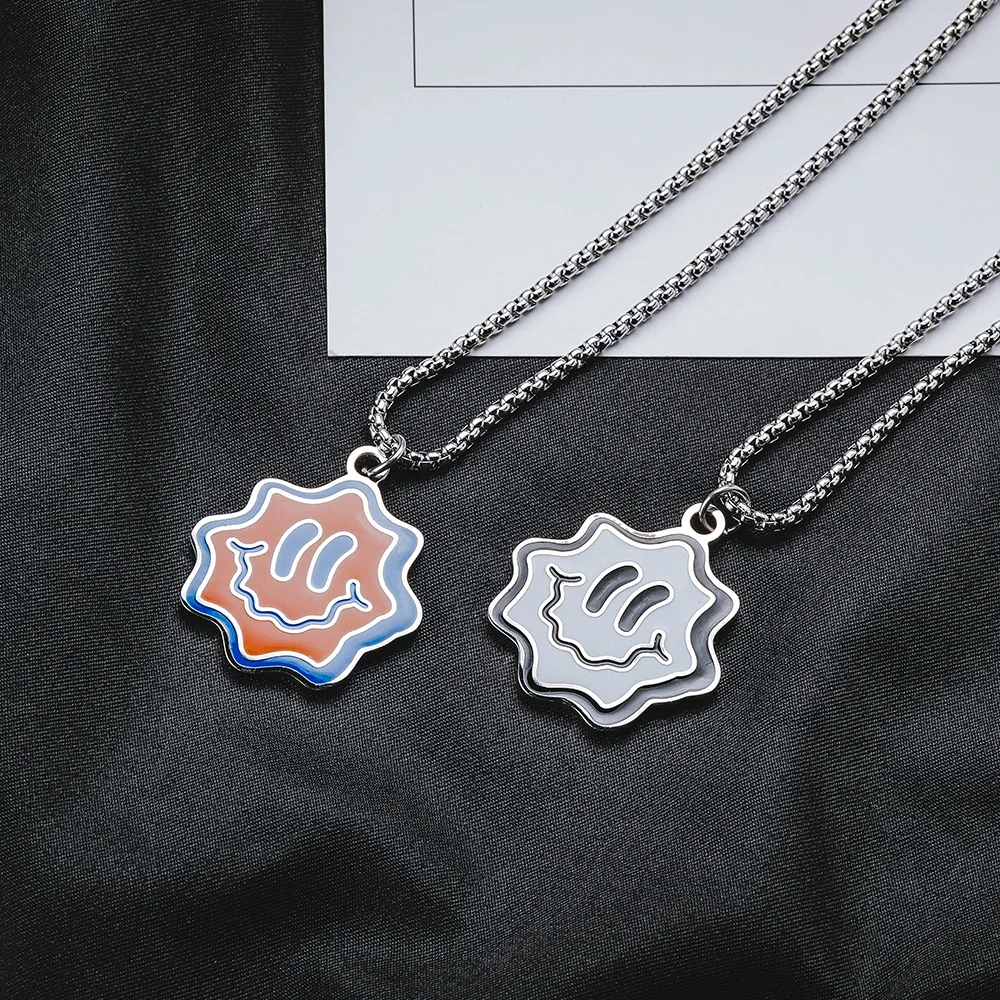 Funny Smile Necklace Men Women Hip Hop Punk Neck Chains Paired Pendant Couple Necklace Friend bff Necklace Collar
