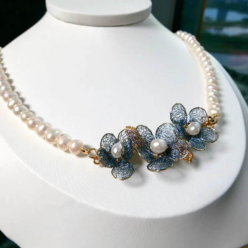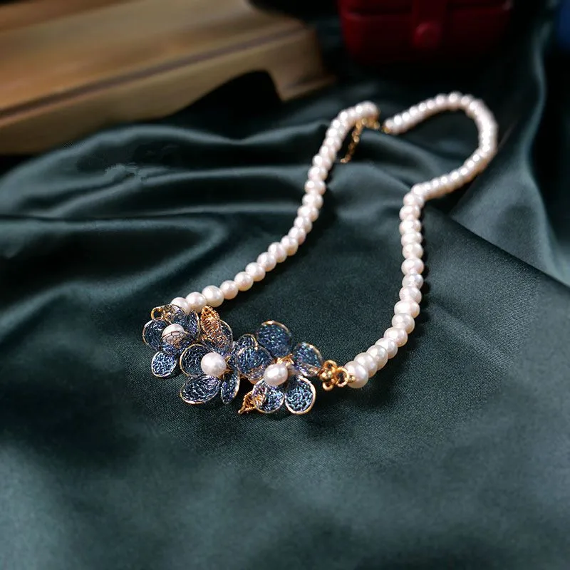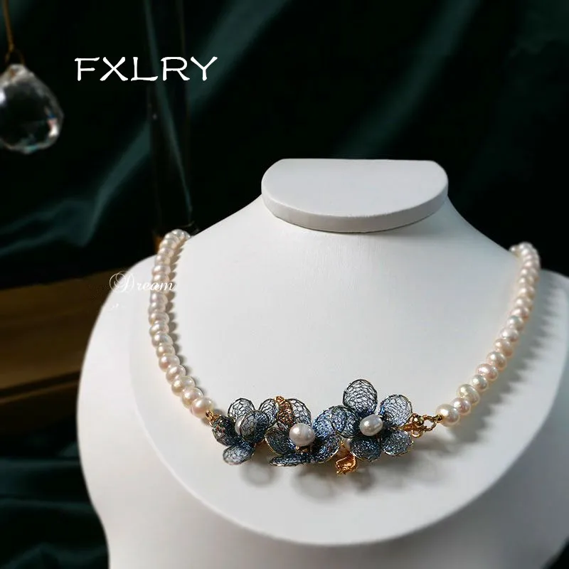 FXLRY Original Design Handmade Natural Pearl Flower Clavicle Necklace For Women Jewelry