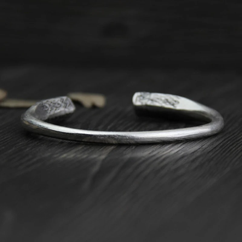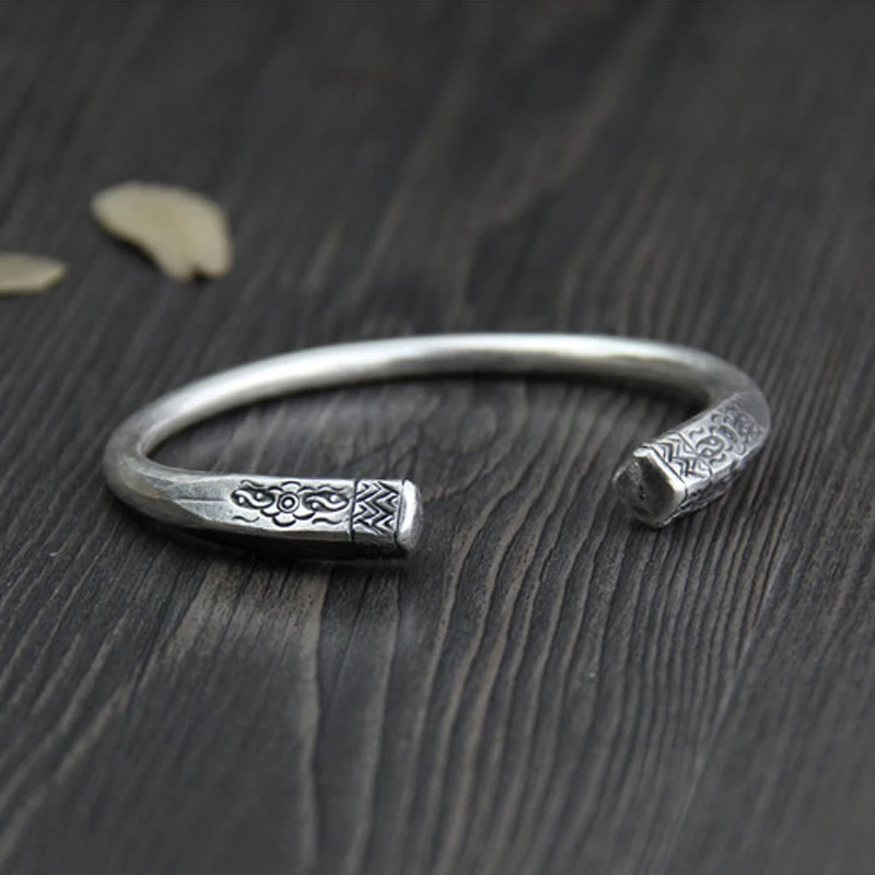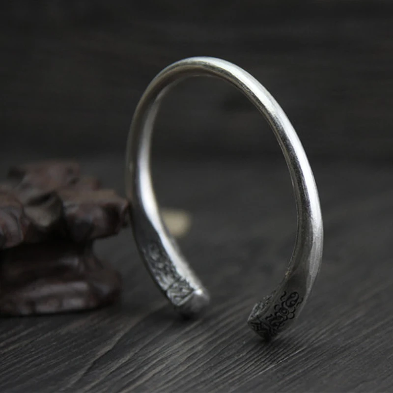 999 Pure Silver Jewelry Vintage Thai Silver Bracelet 8mm Carved Bangles Fashion Female 32G WTB073