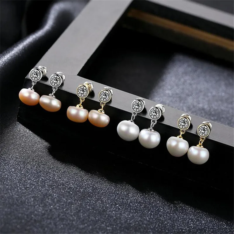 Brand Single Pearl Stud 9-9.5mm Half Pearl Earrings Silver Gold Color AAAAA Pearl Stud Earrings For Women Wedding Gift