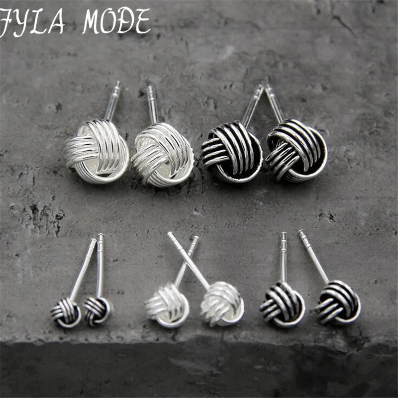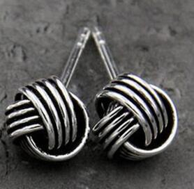 New Real 925 Sterling Silver jewelry Twine Twisted Love Knot Stud Earrings Tinny Knot Ball Women's 7mm 5mm 3mm TYC172