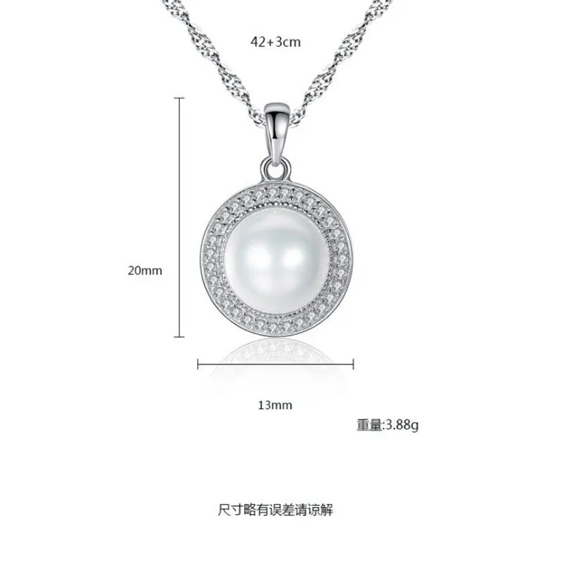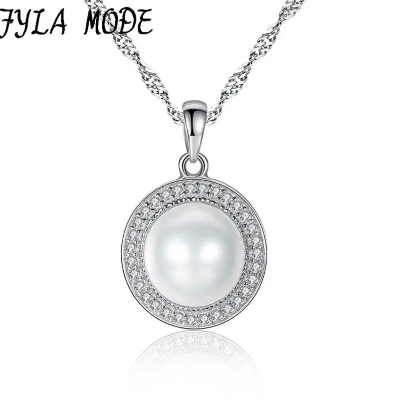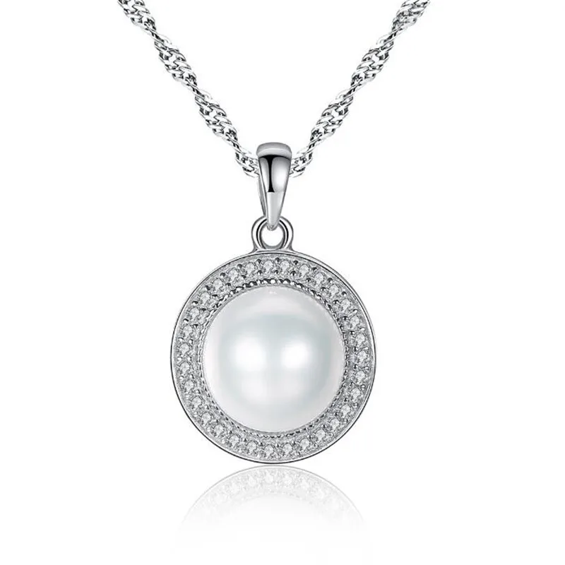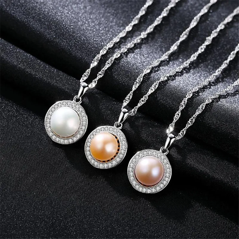Real 925 Sterling Silver Natural White Pink Purple Pearl Round Pendants Necklaces For Women Fashion Jewelry