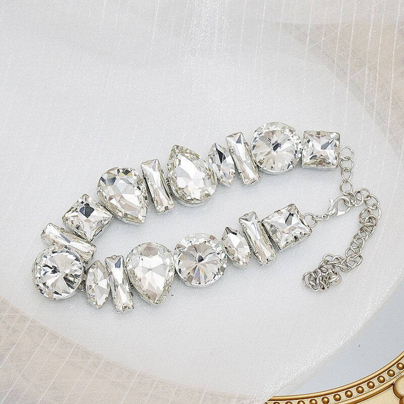 FYUAN Geometric Crystal Choker Necklaces for Women Water Drop Clavicle Chain Necklaces Statements Jewelry Gifts