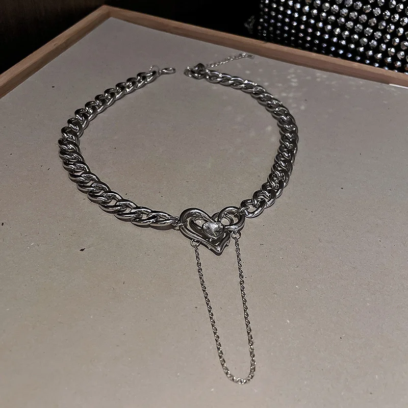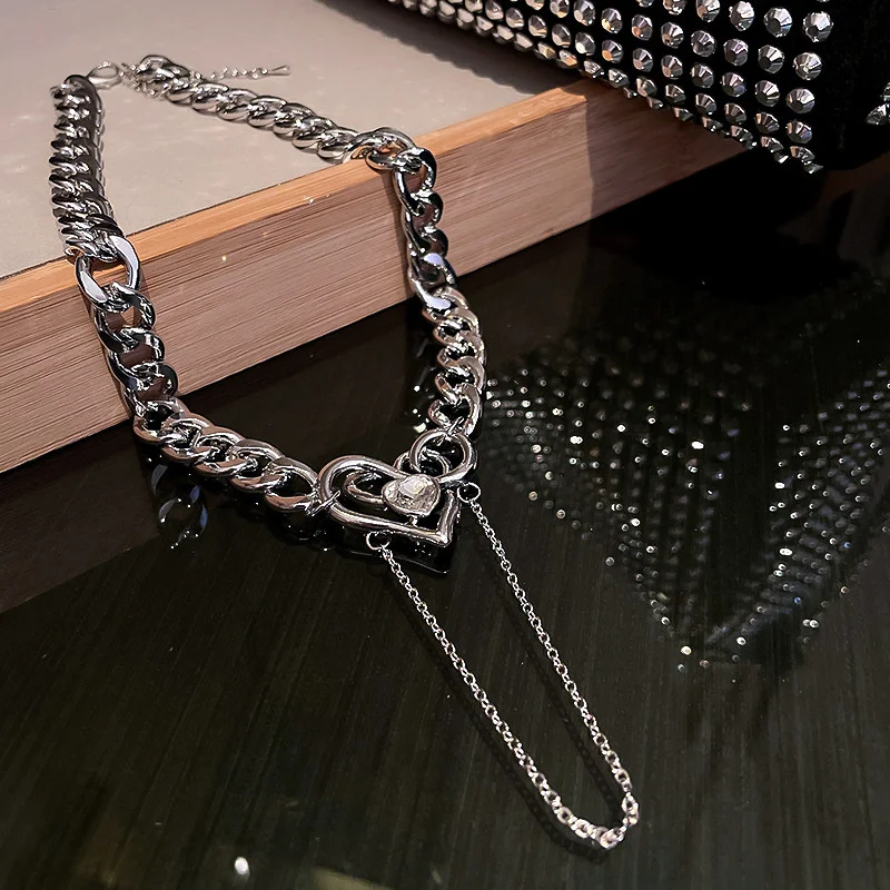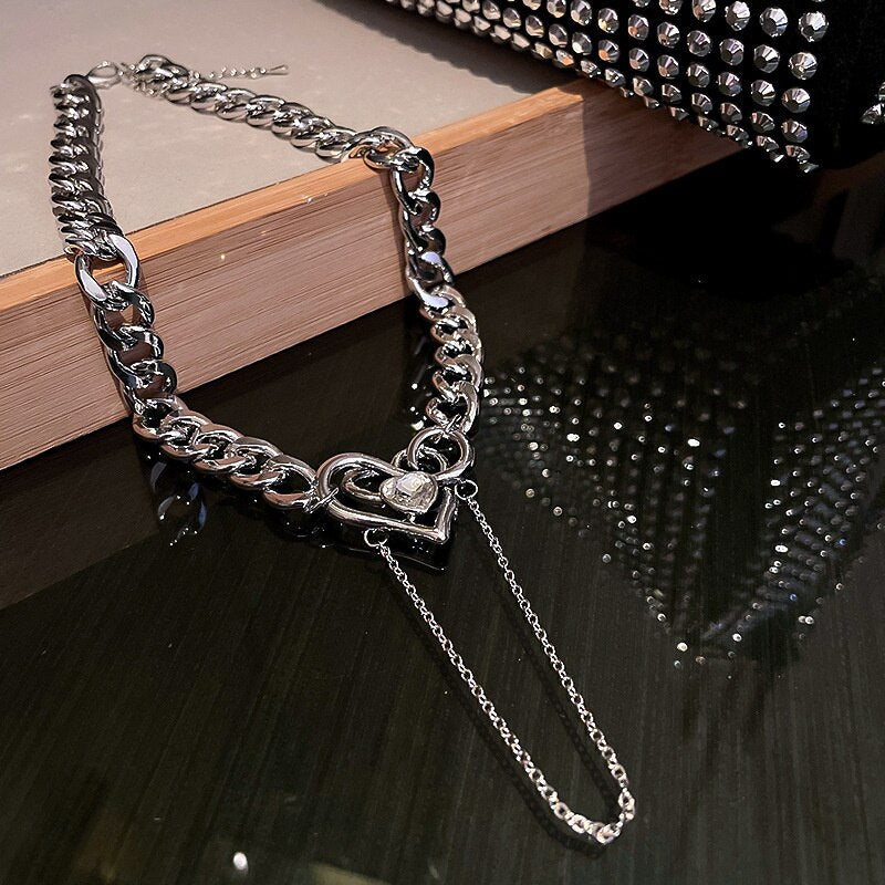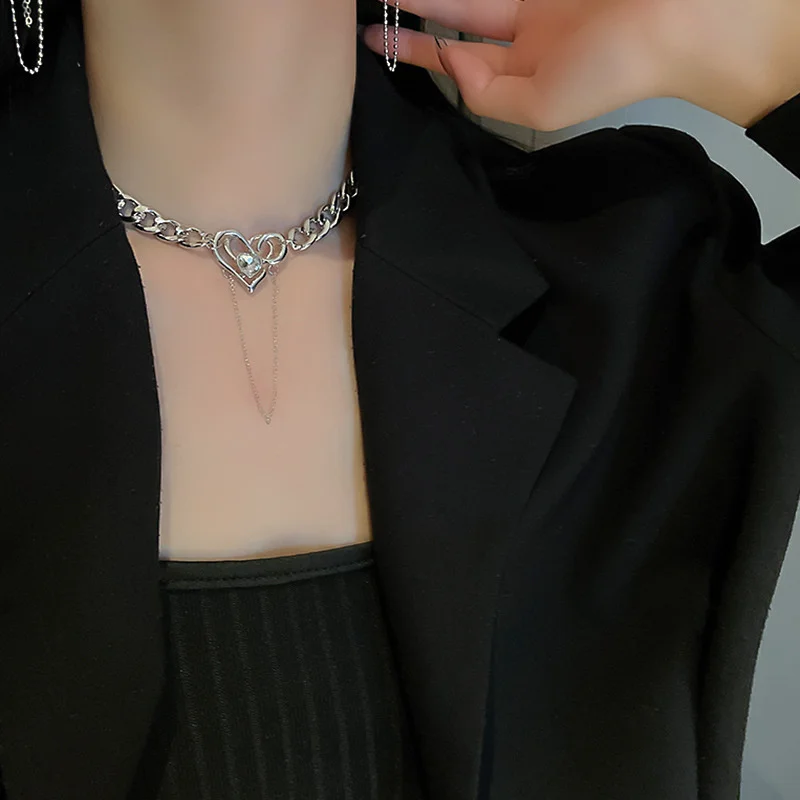 FYUAN Geometric Heart Crystal Choker Necklaces for Women Chain Long Tassel Pendant Necklaces Statement Jewelry