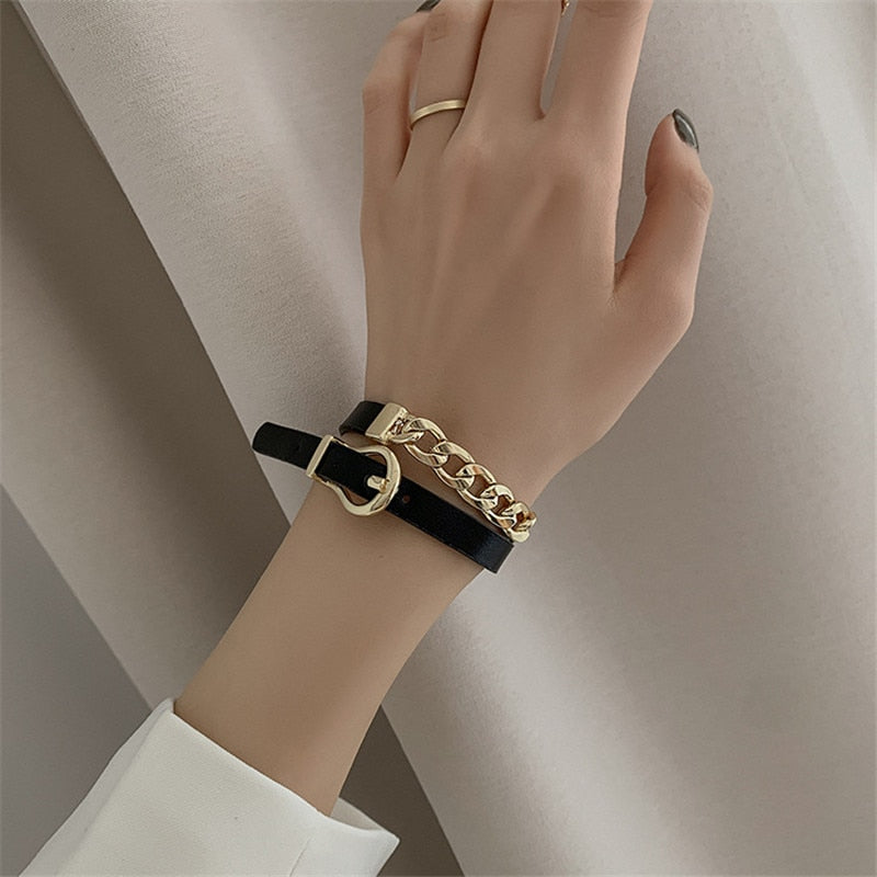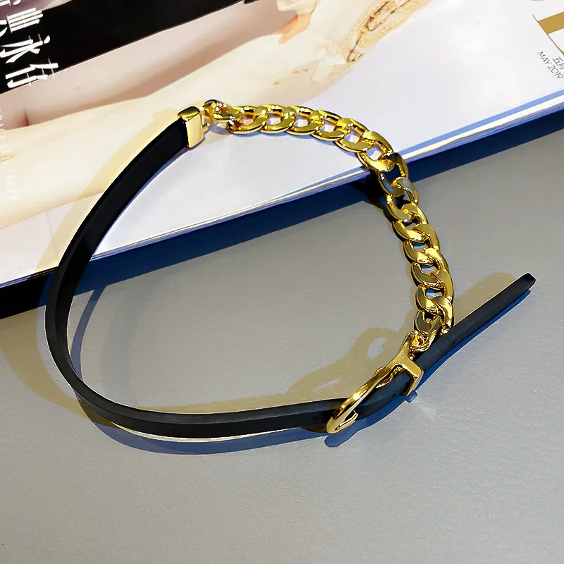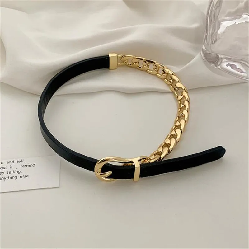 FYUAN Golden Chain Choker Necklaces for Women Short Black Leather Button Necklaces Statement Jewelry