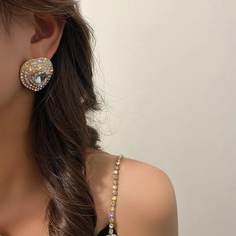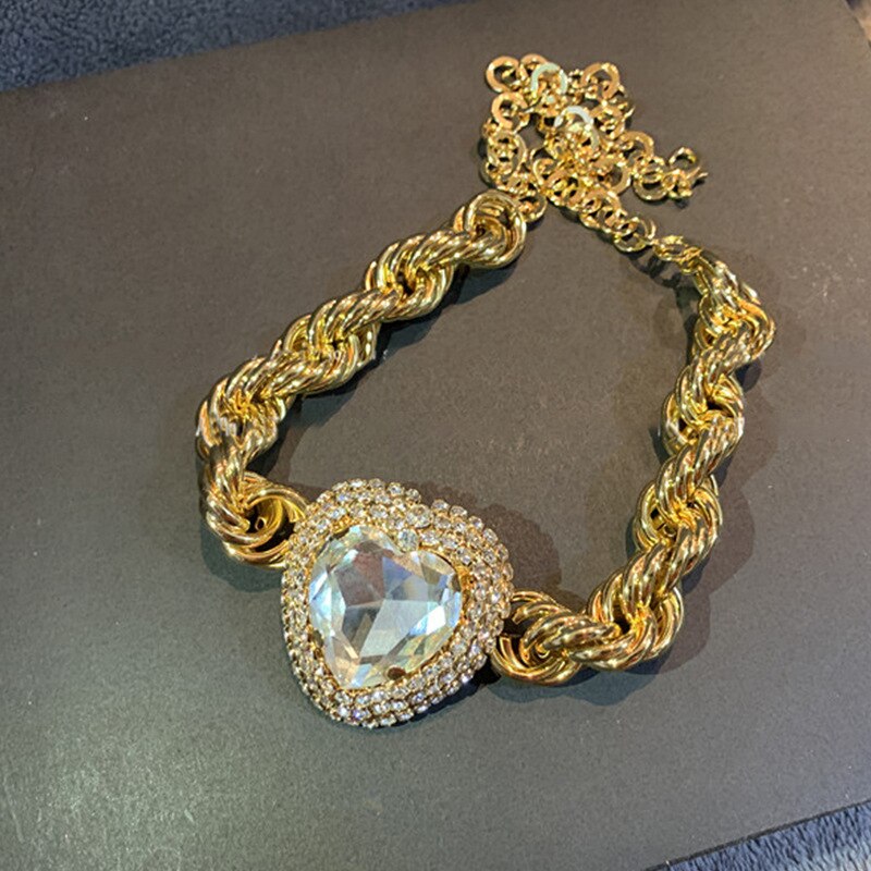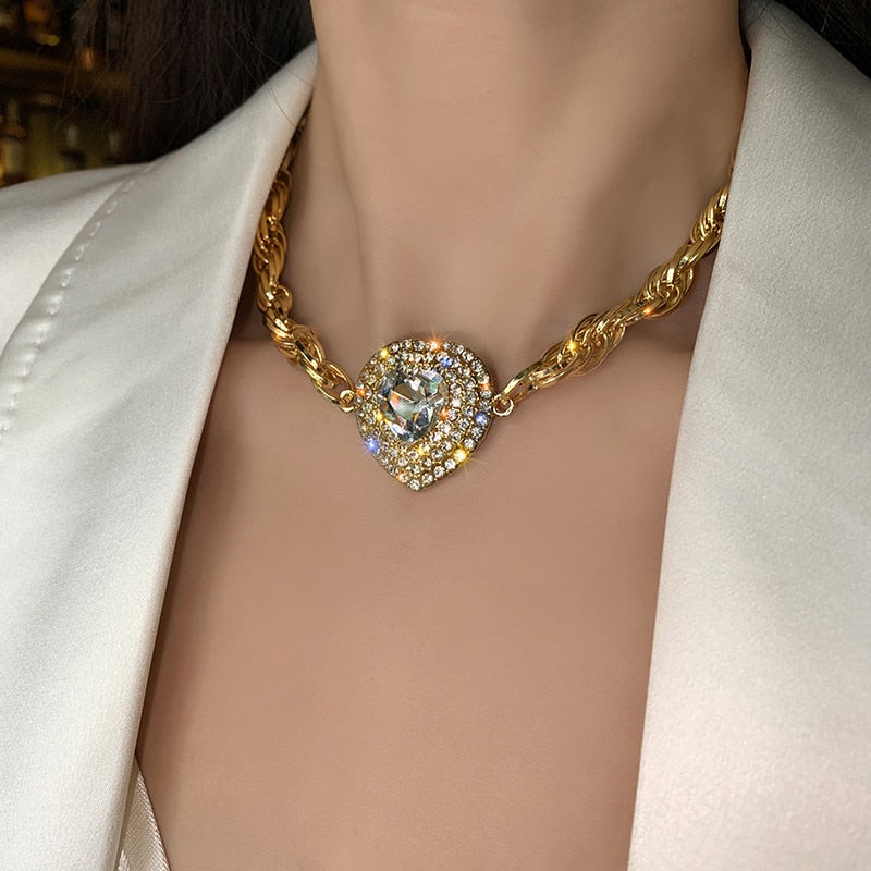 FYUAN Golden Heart Crystal Choker Necklaces for Women Geometric Chain Necklaces Statement Jewelry Party