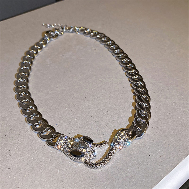 FYUAN Snake Shape Hook Choker Necklaces for Women Geometric Chain Necklaces Statement Jewelry