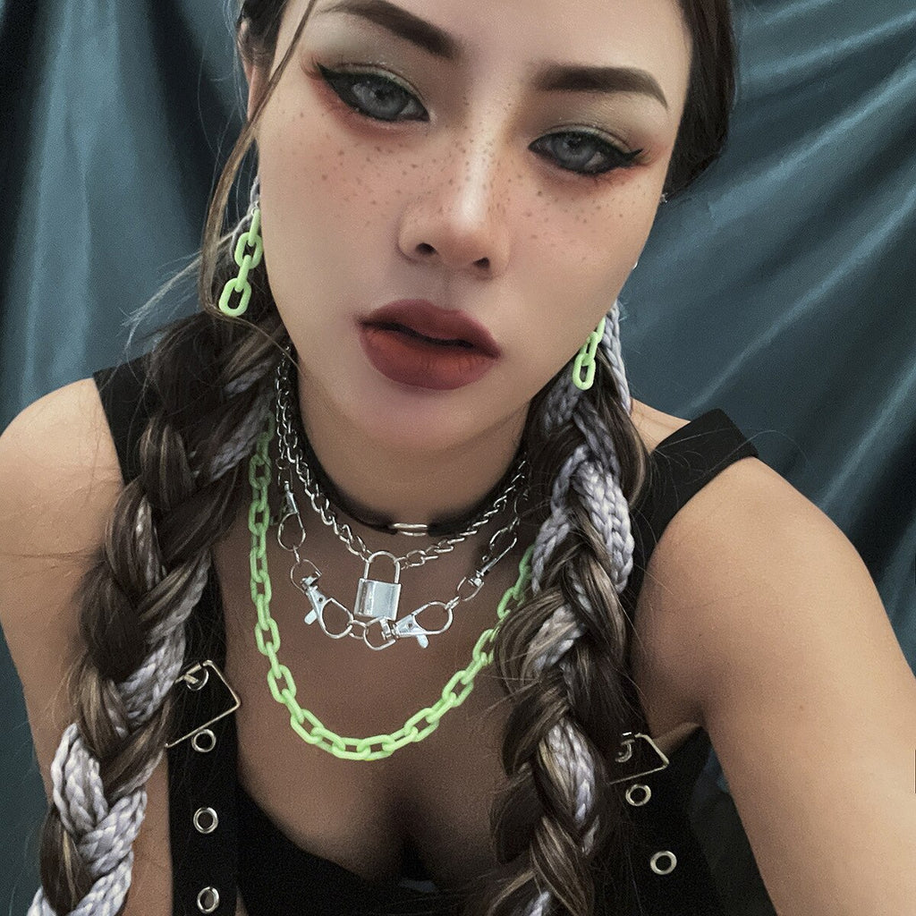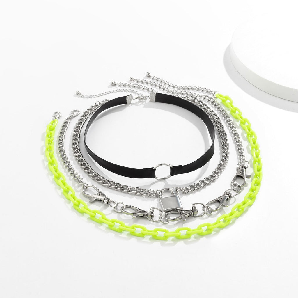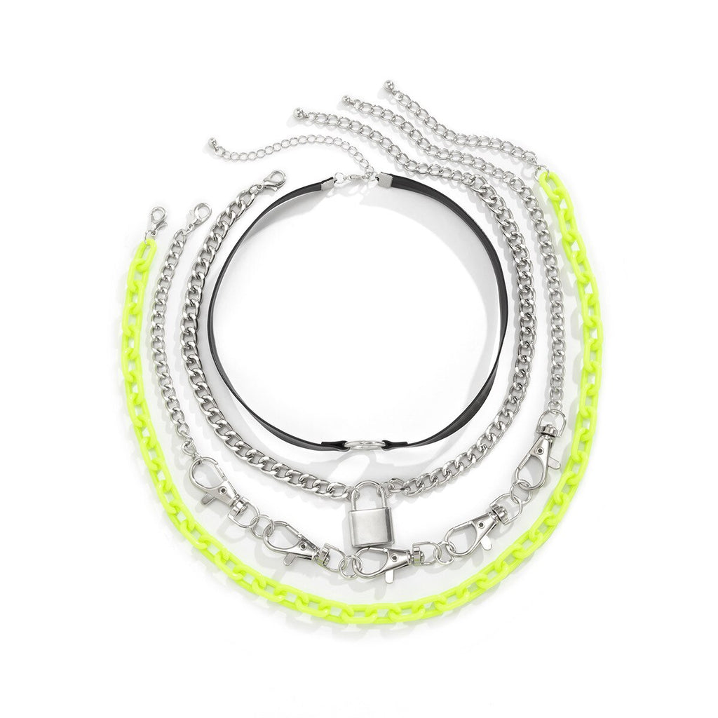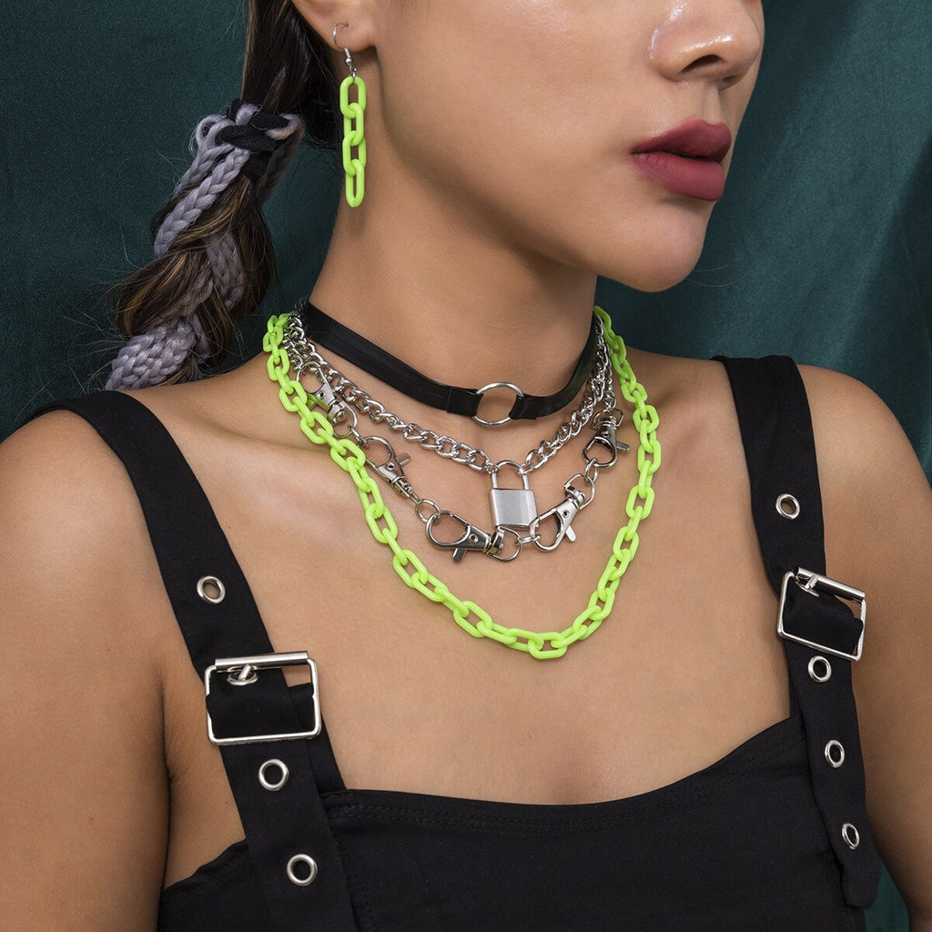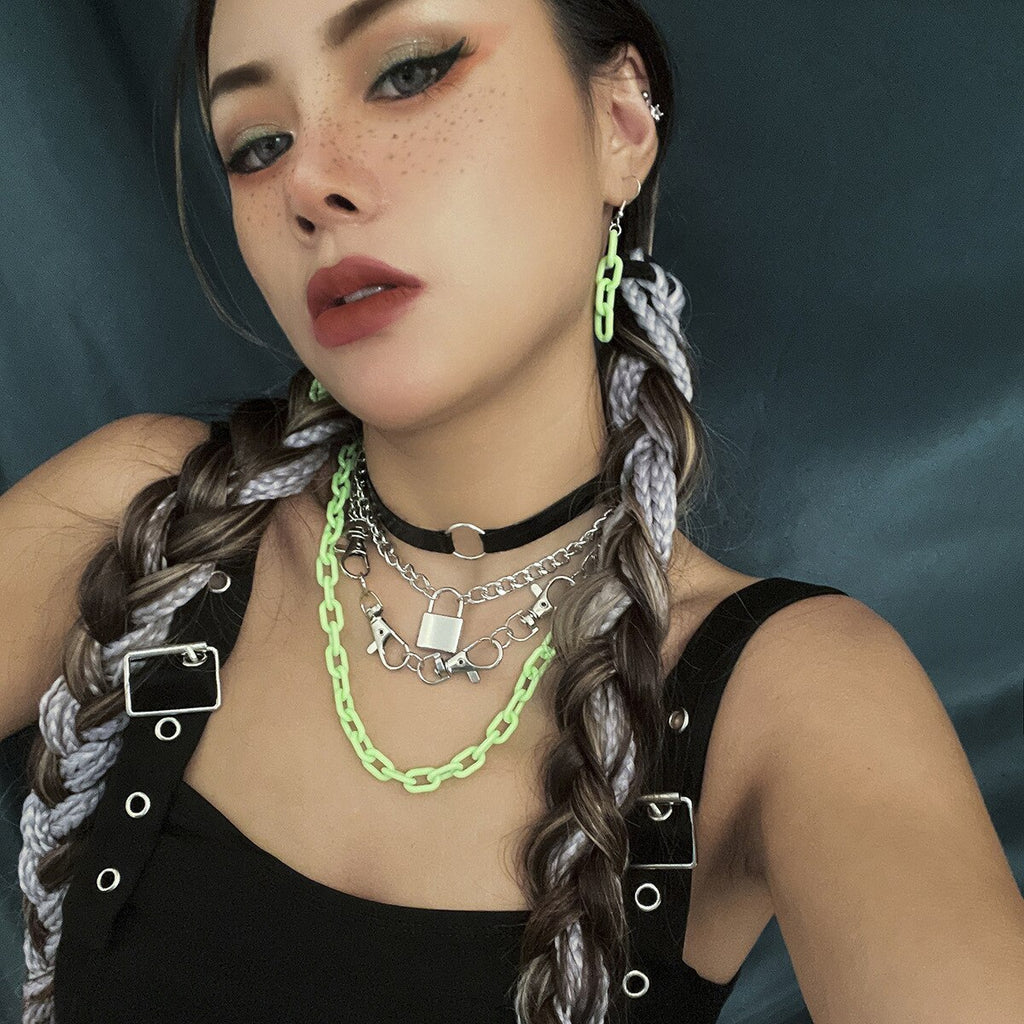 Gaku Exaggerated Punk Geometric Lock Mixed Necklace Hip Hop Street Gothic Fluorescent Hollow Chain Necklace