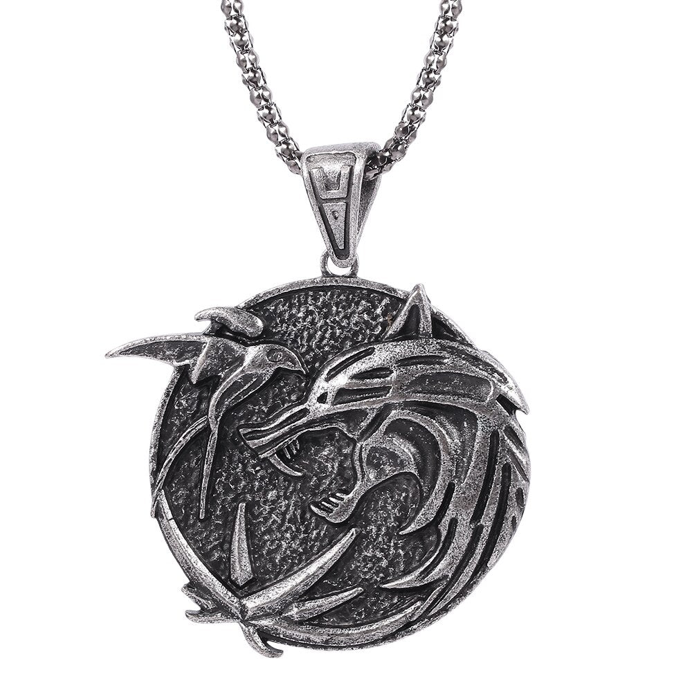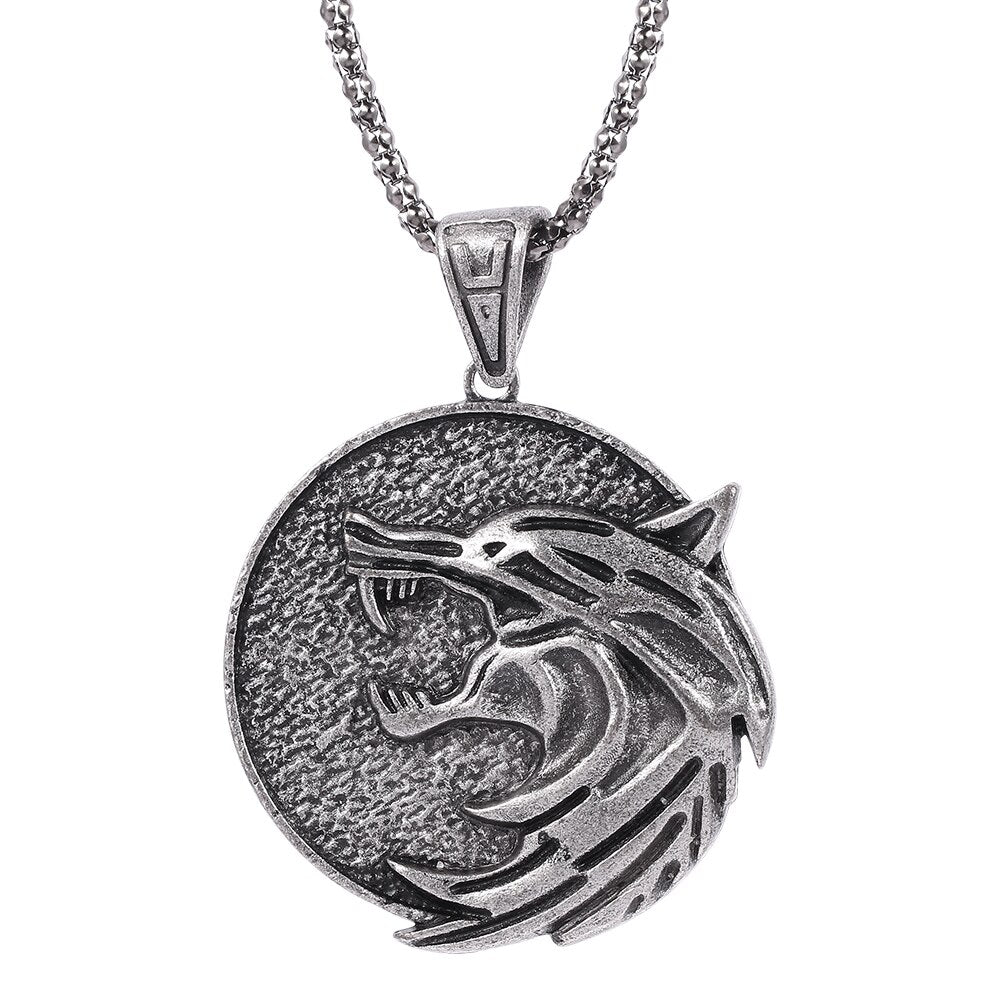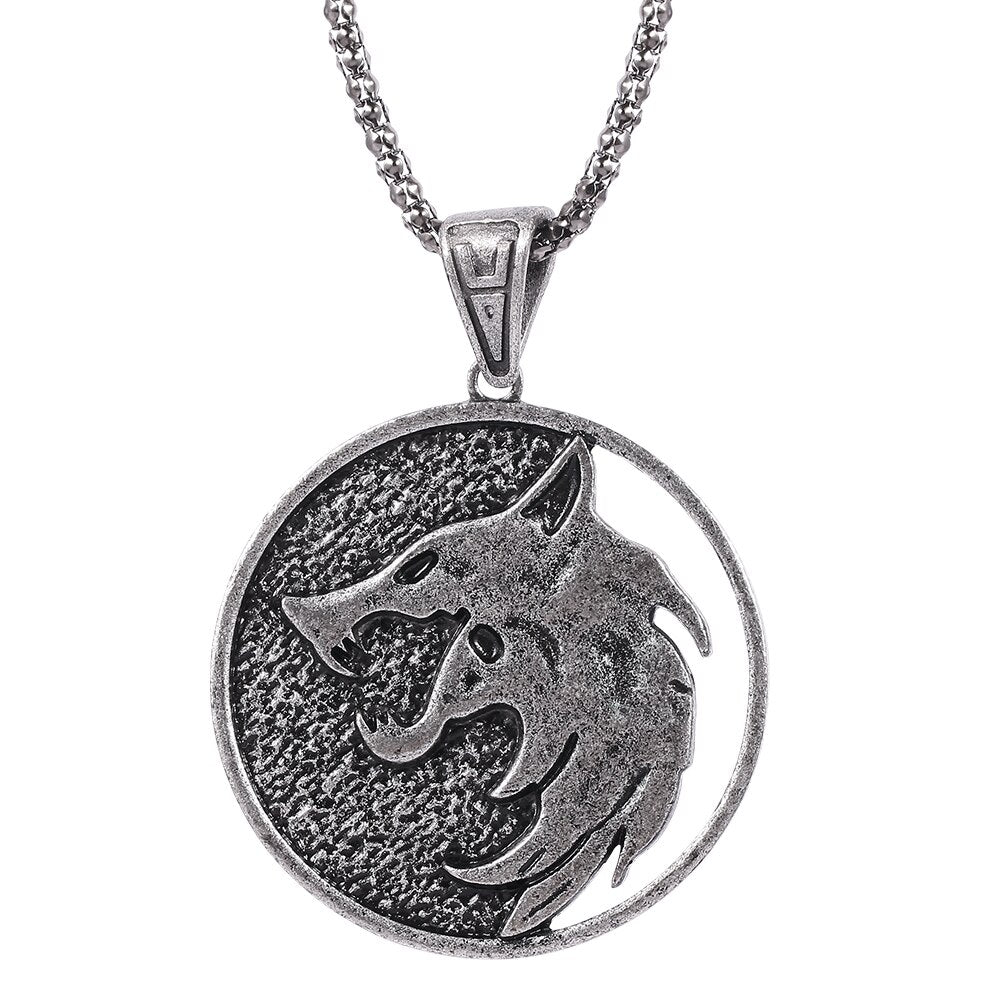 Game Necklace Wild Hunt Wolf Medallion Round Necklace Men Pendant Metal Chian Wicher 3 Geralt Cosplay Classic Jewelry