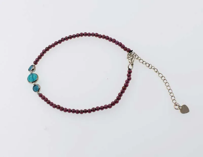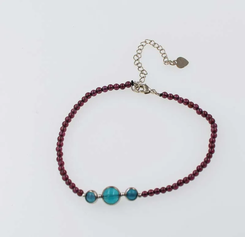 garnet 3mm round red and amazonite green bracelet 7.5inch beads nature handcraft FPPJ
