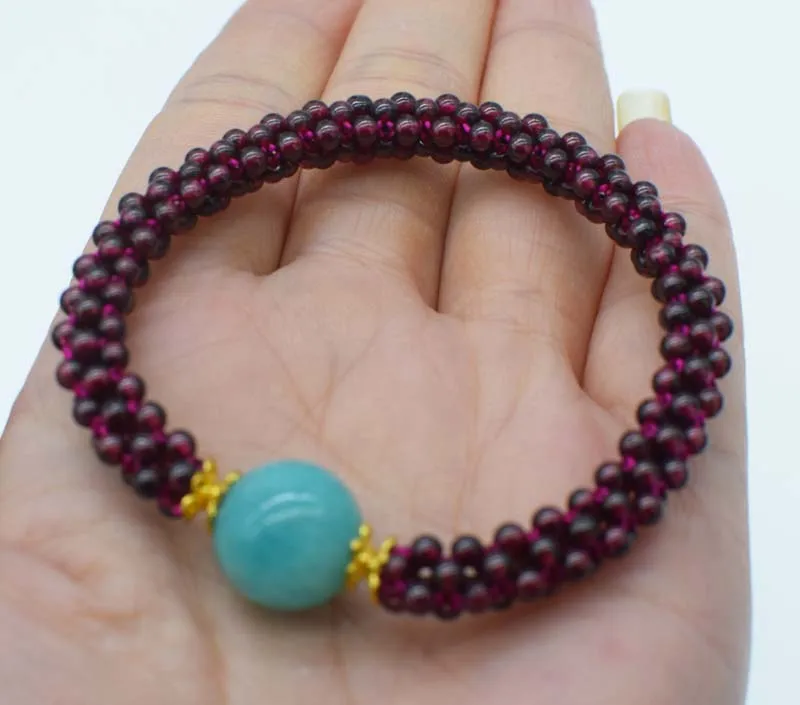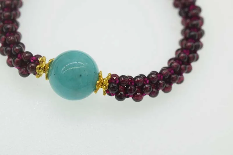 garnet round red and amazonite round 12mm bracelet 7.5inch beads nature handcraft