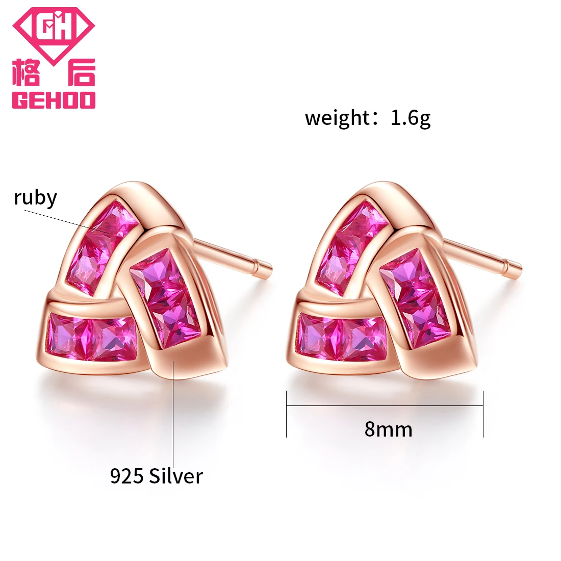 2020 Geometry Triangle Pretty Gem Stones Stud Earrings Solid 925 Sterling Silver Women Charm Ear Jewelry Wedding Brinco
