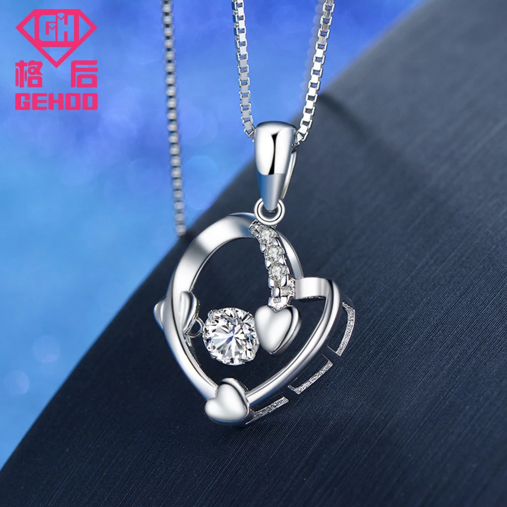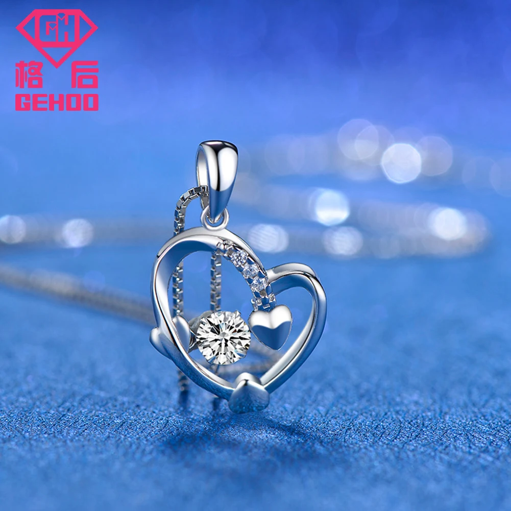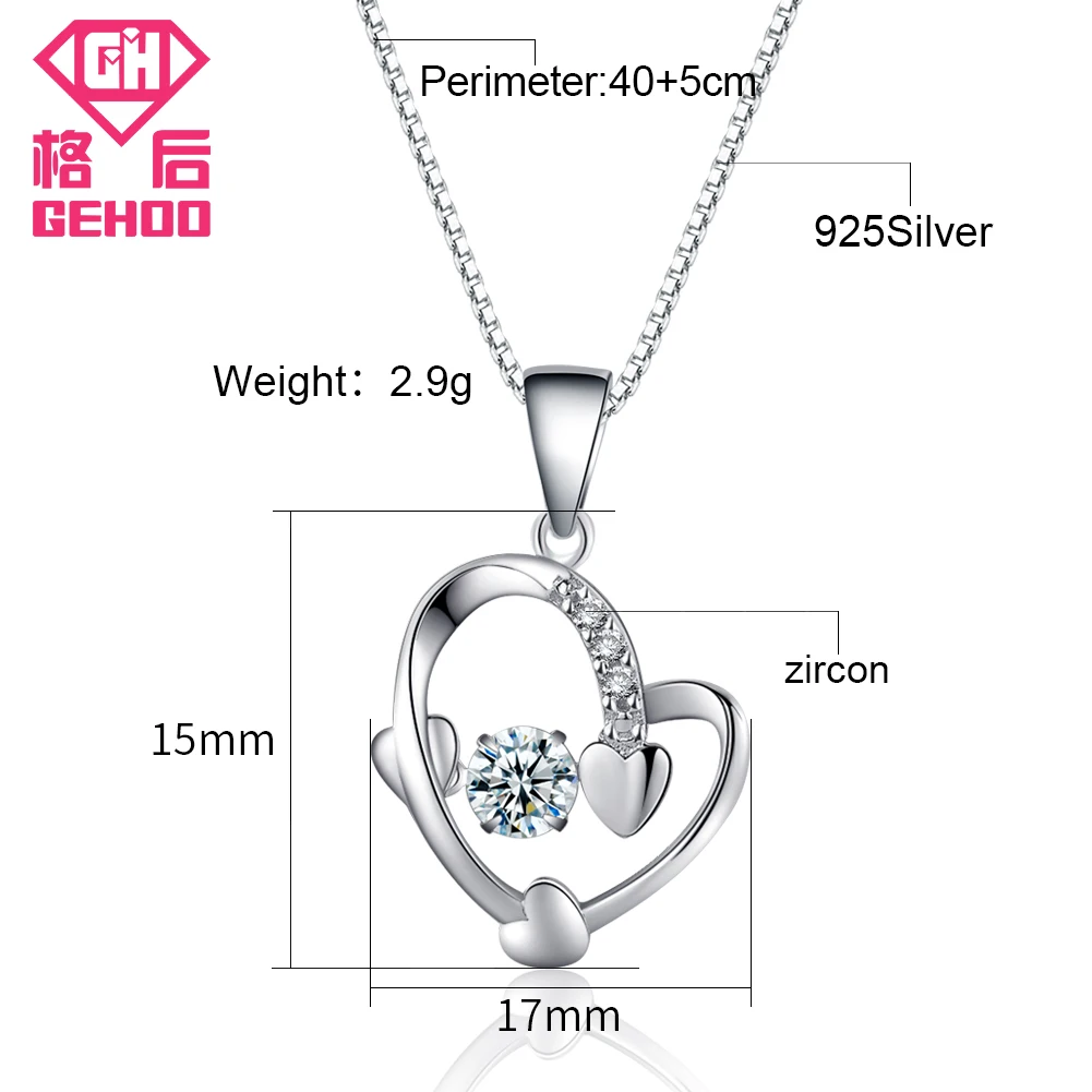 925 Sterling Silver Chain Jewelry Love Heart Pendant Necklace Active Dancing CZ Cubic Zircon Charm Collar Decoration Gift