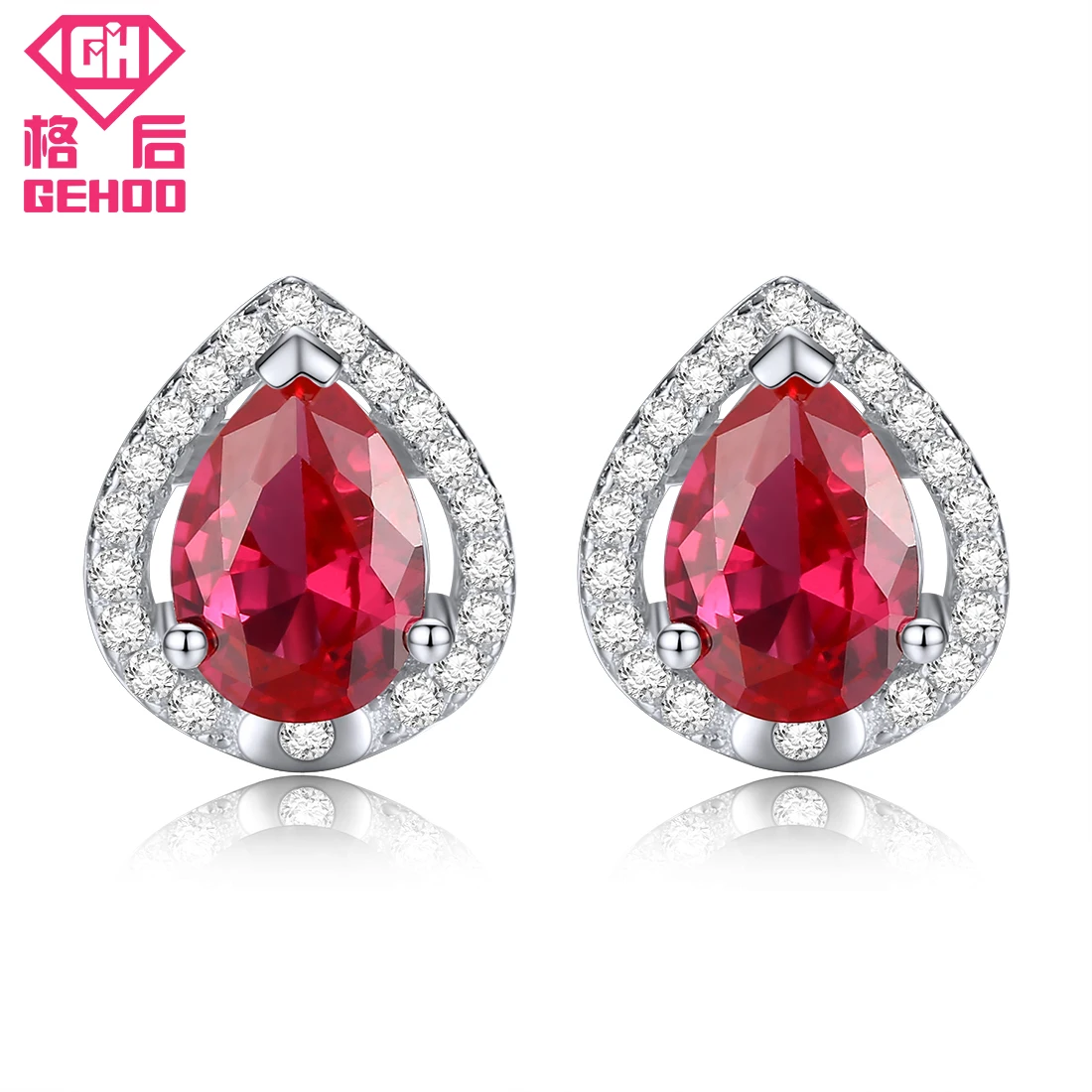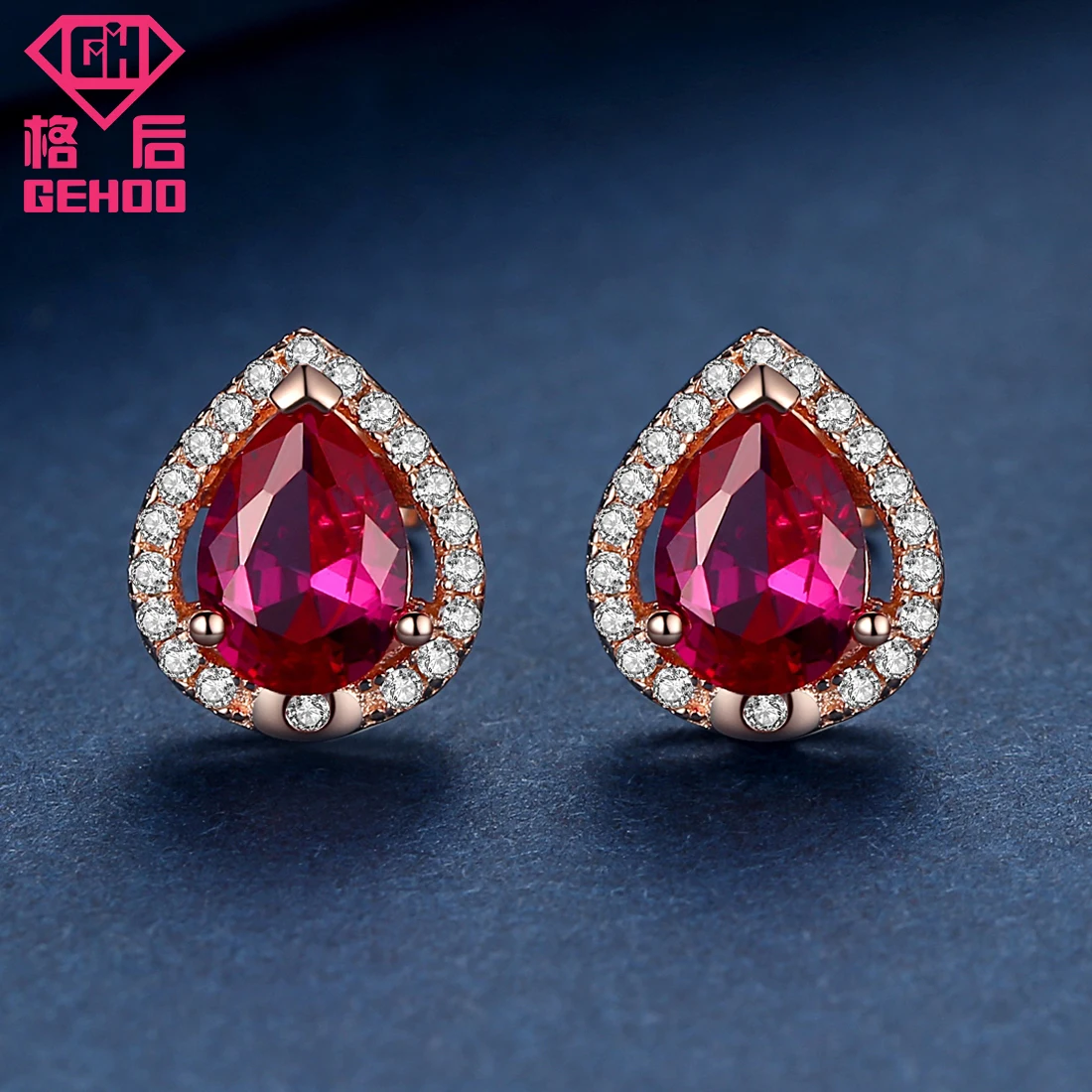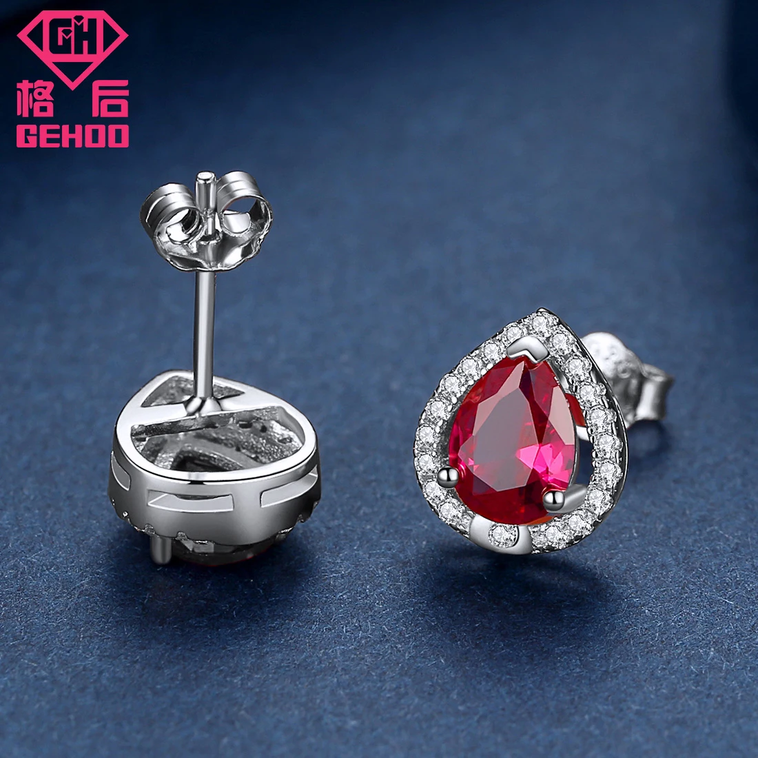 925 Sterling Silver Stud Earrings Women Ear Fine Jewelry Wedding Brinco Water Drop Red Ruby Design Nice Gift Vintage Charm