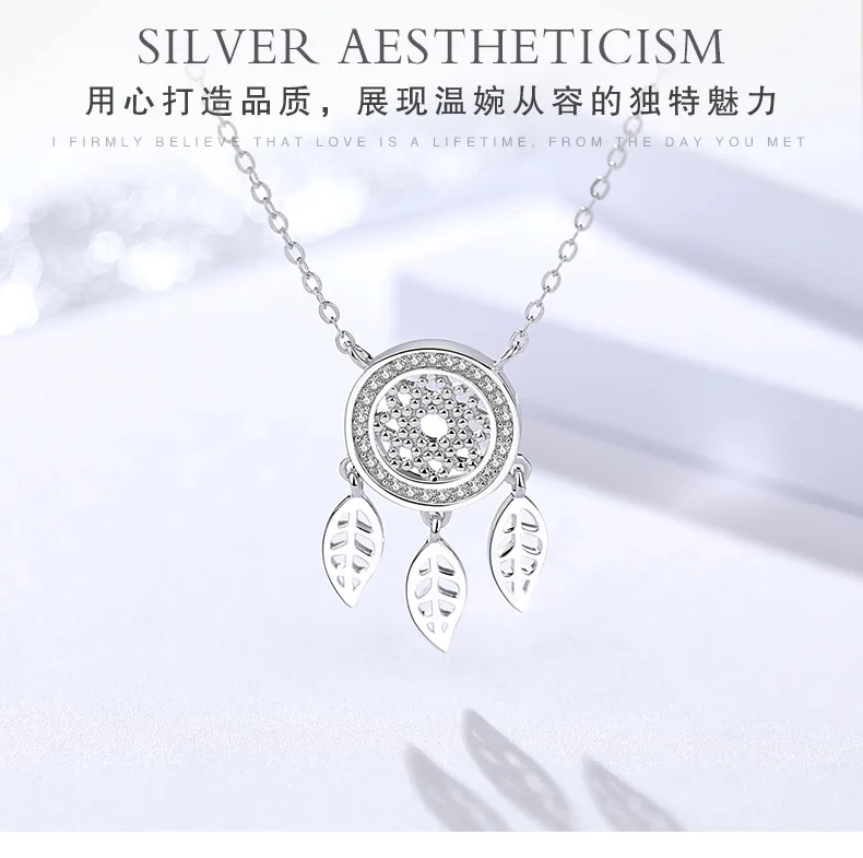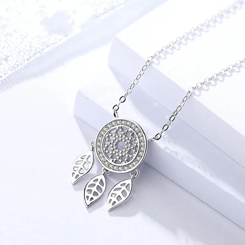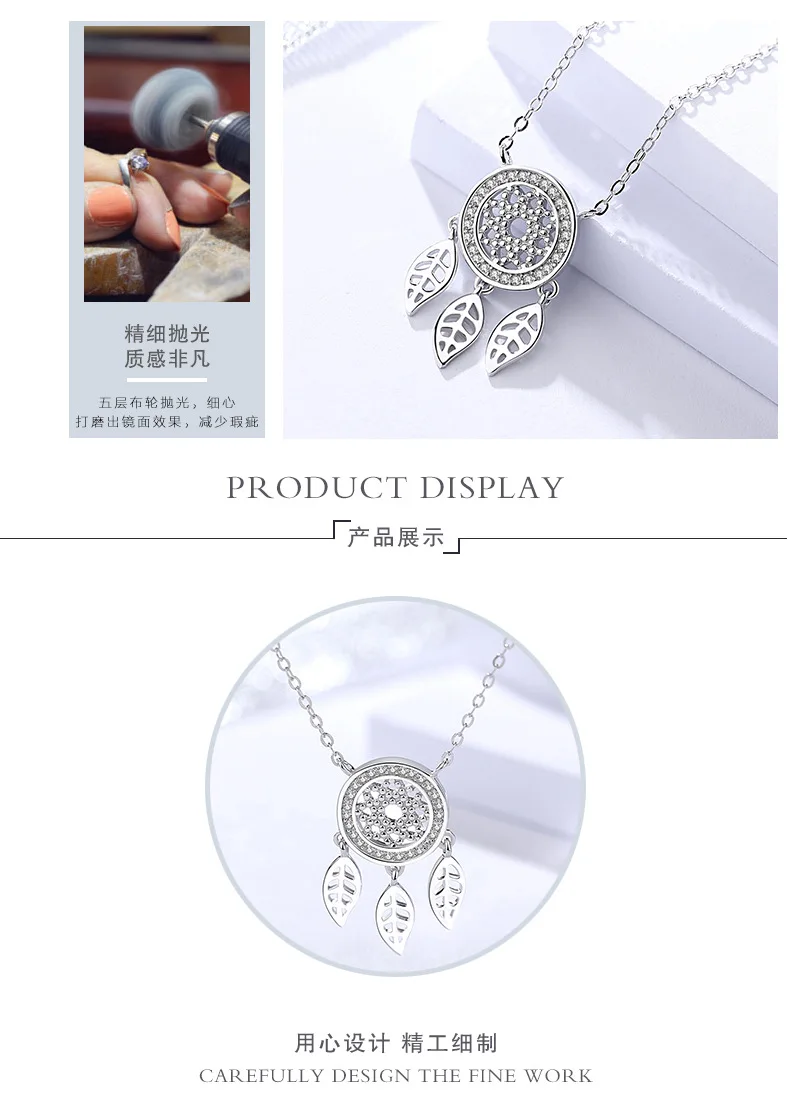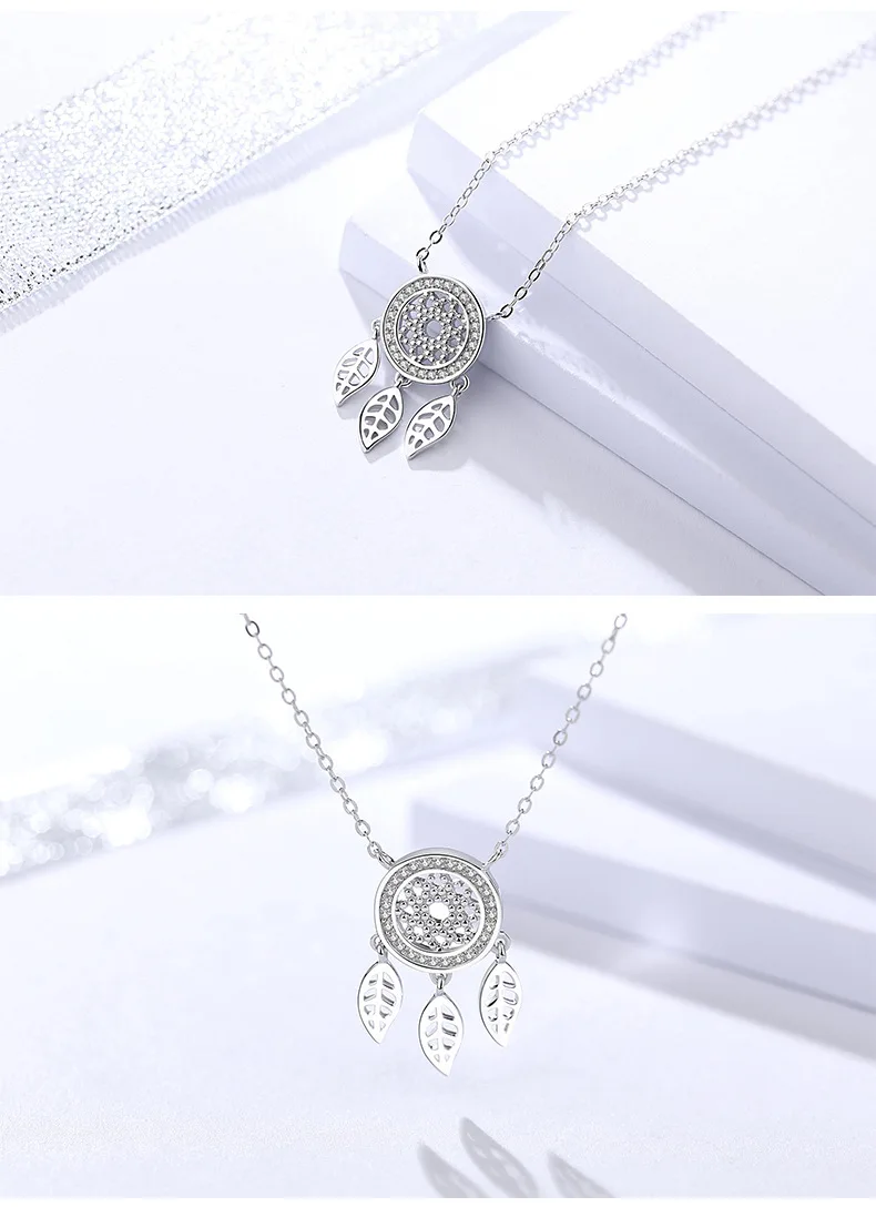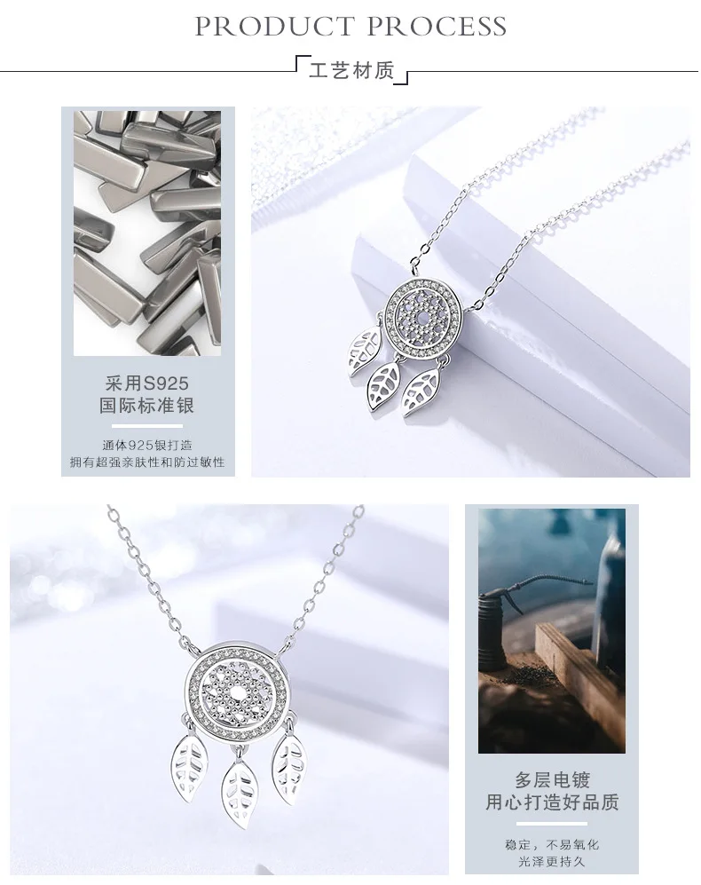 Ethnic Style Dreamcatcher Feather Charm Necklace Pendant 925 Sterling Silver Zircons Paved Choker Female Statement Jewelry