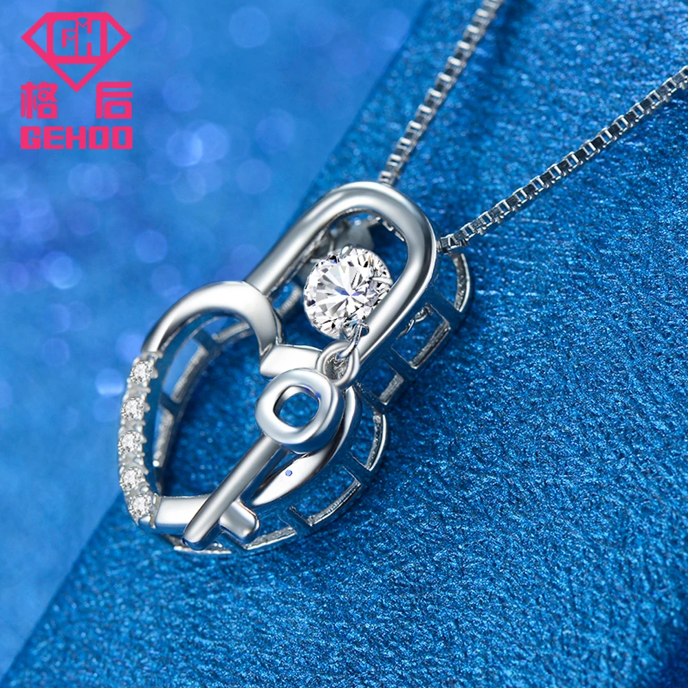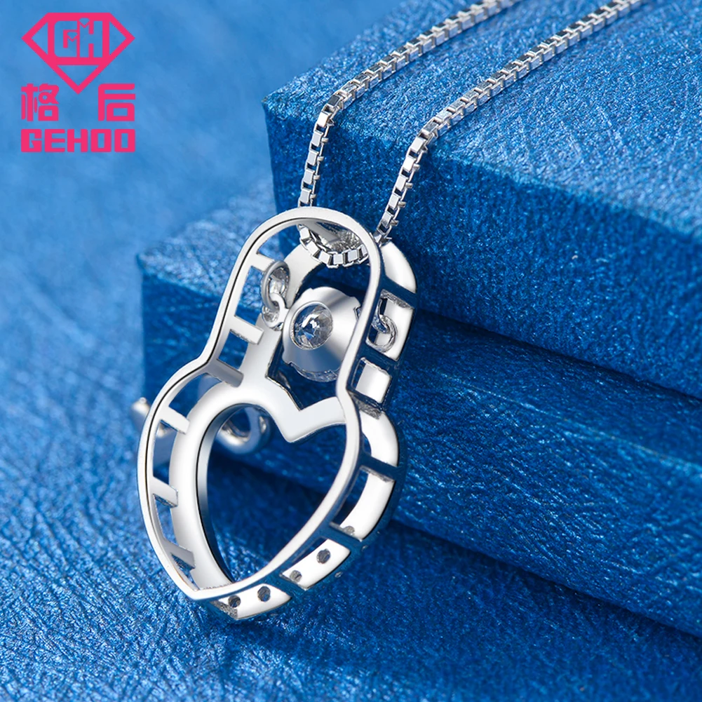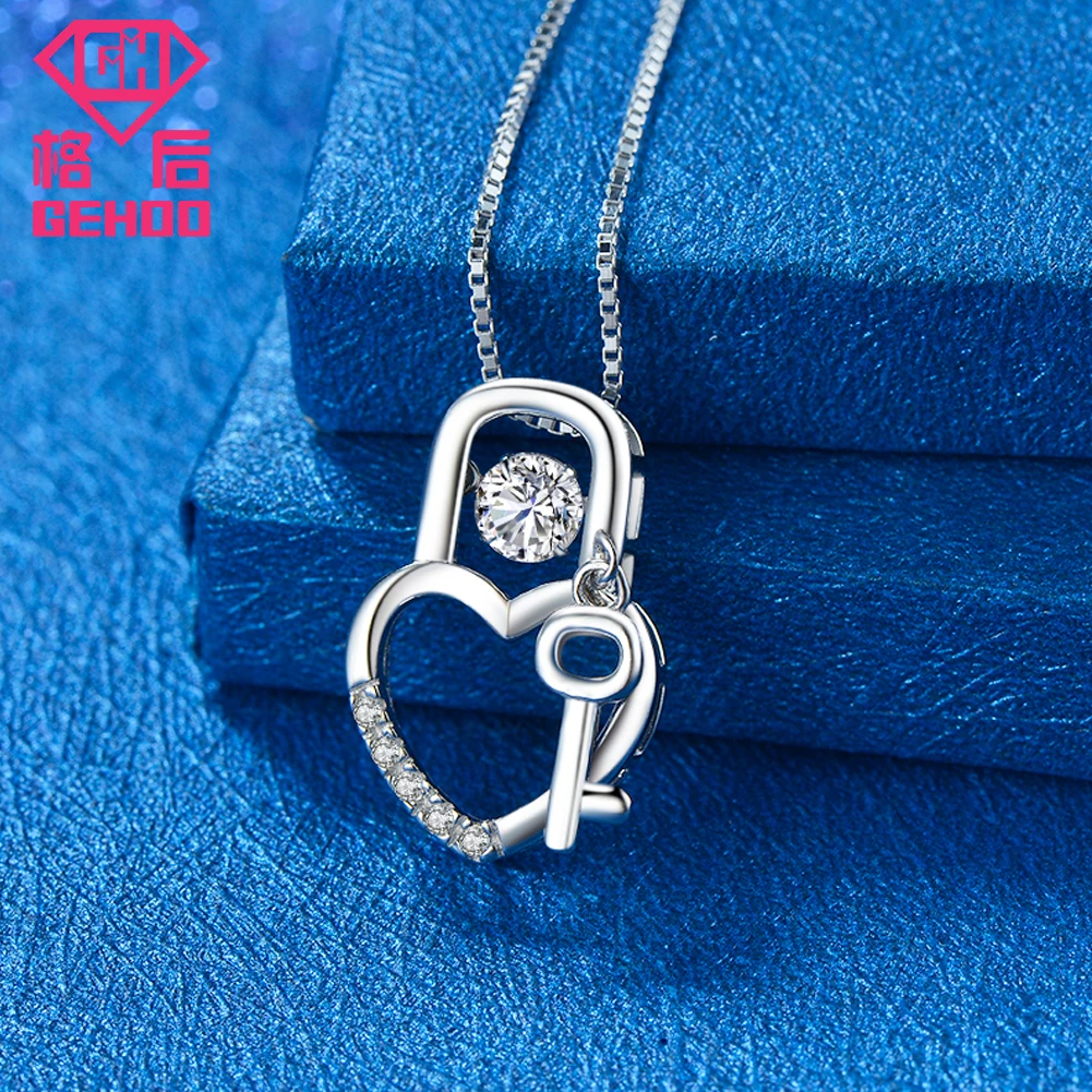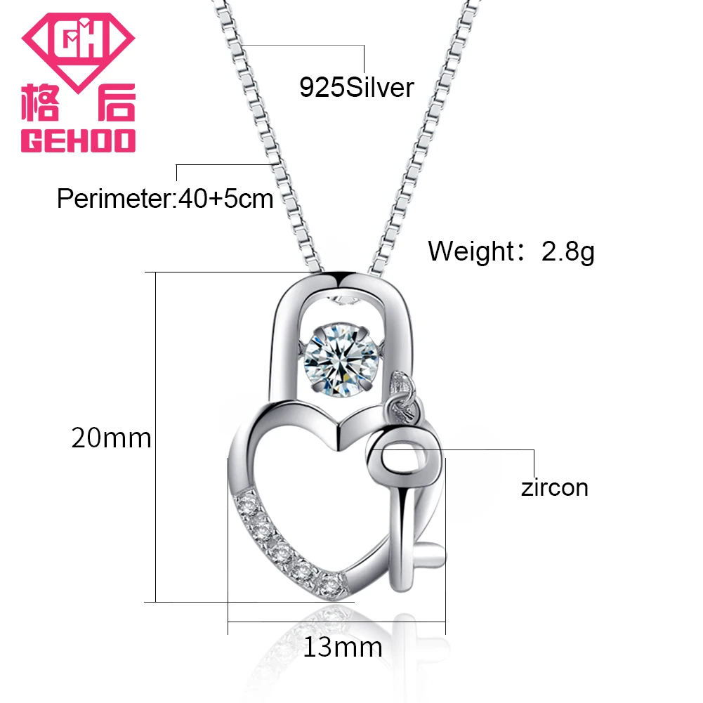 Love Heart Lock Pendant Necklace Active Dancing CZ Cubic Zirconia 925 Sterling Silver Women Gift Fine Jewelry Charm Collar