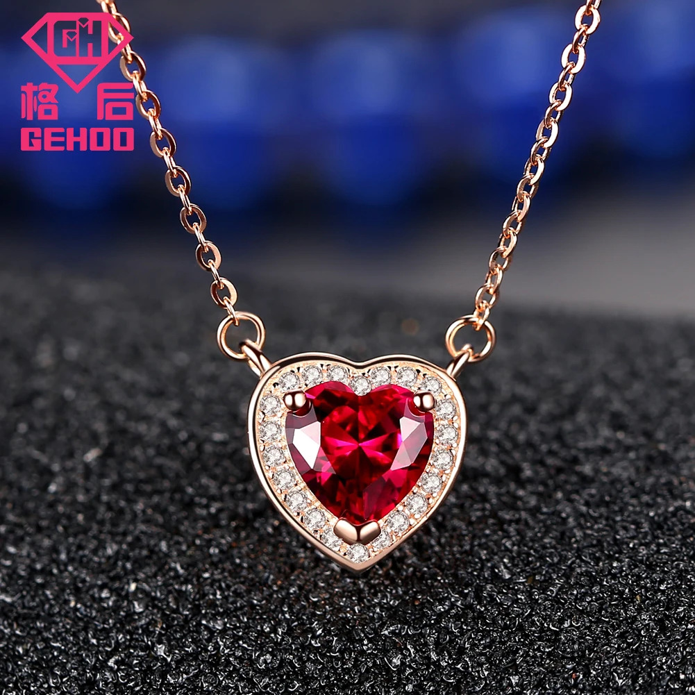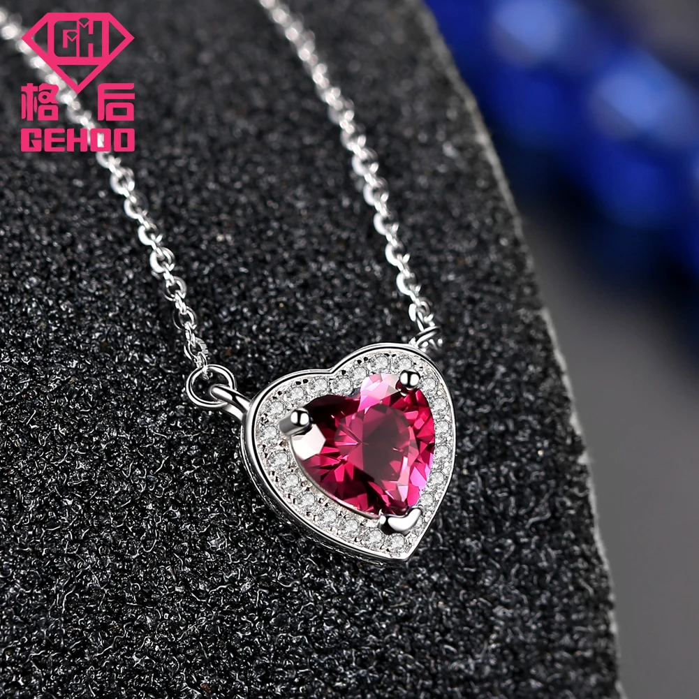 Love Heart Ruby Vintage Zircon Paved Pendant 925 Sterling Silver Necklace Chain Choker Jewelry for Women Bridal Wedding