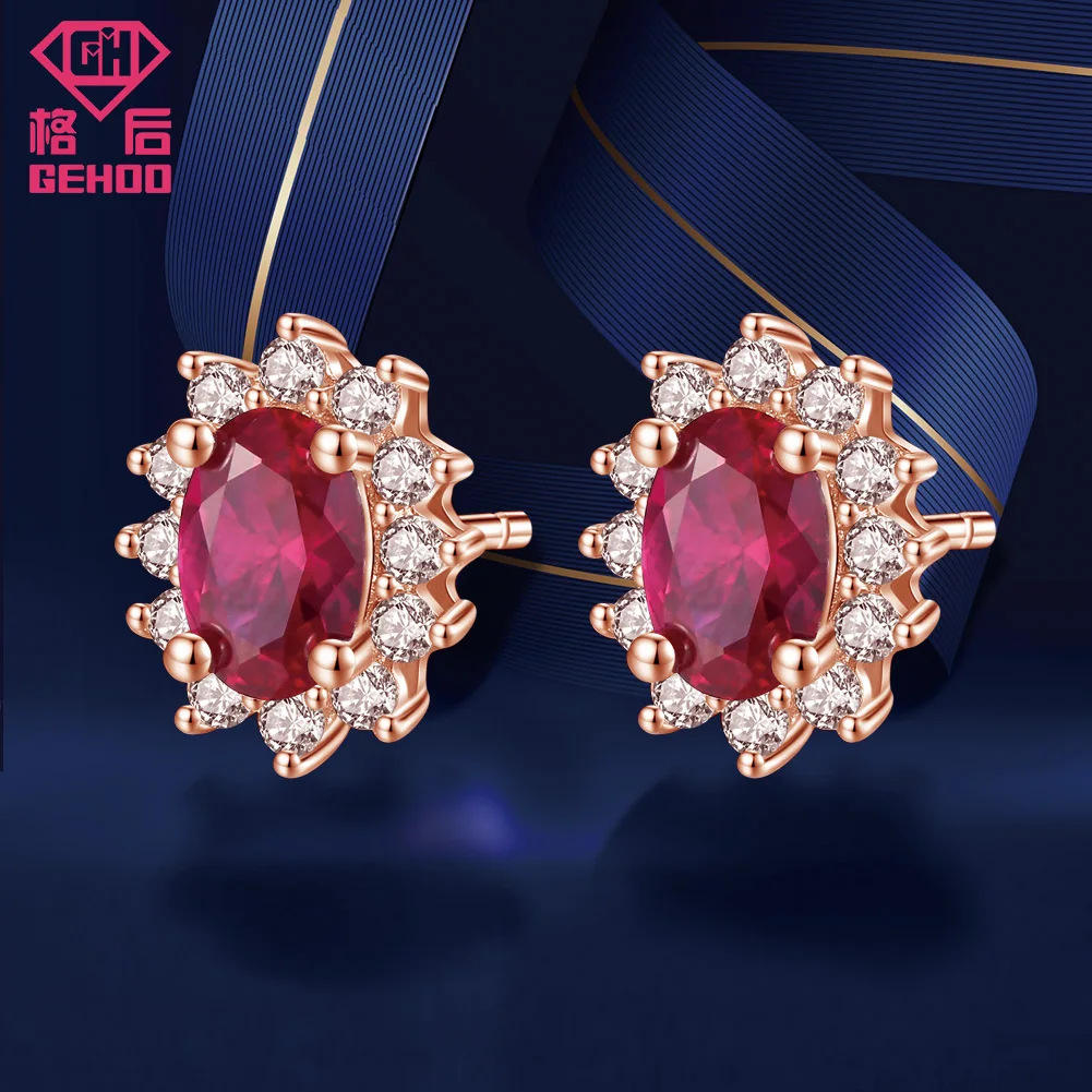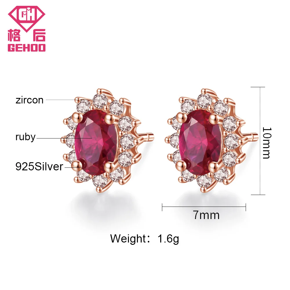 Oval Red Pretty Garnet CZ Zircon Paved Real 925 Sterling Silver Wedding Jewelry Retro Earrings Women Mom Gift Brincos