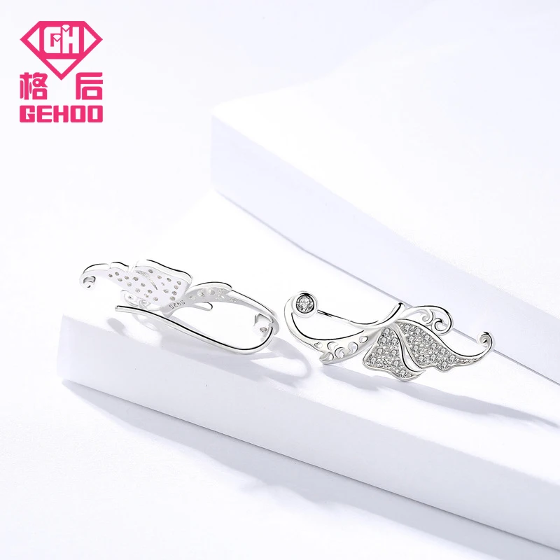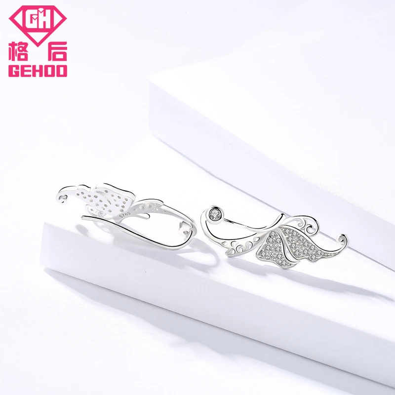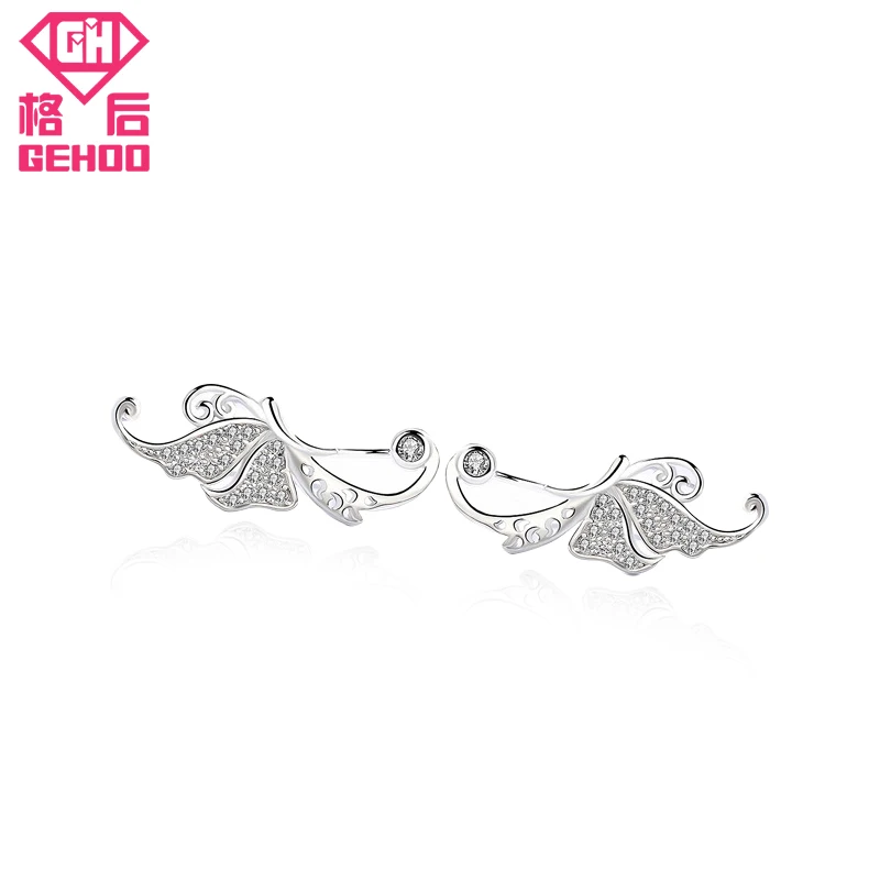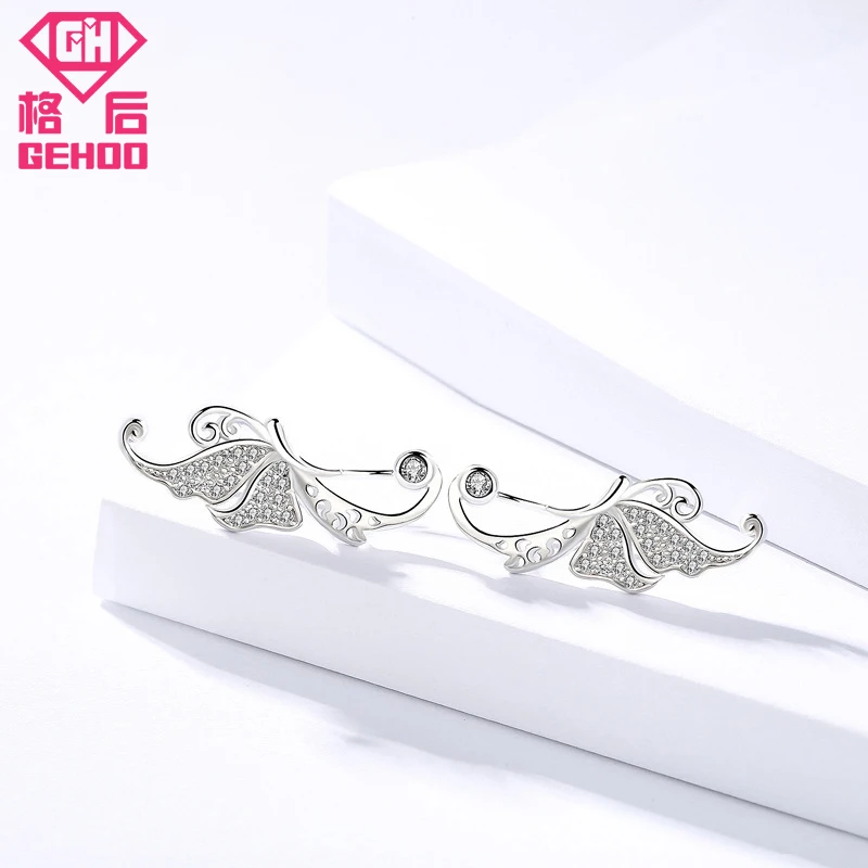 Solid 925 Sterling Silver Women Ear Fine Jewelry Charm Earrings Wing Design Stud Earrings Gift Vintage Wedding Brinco
