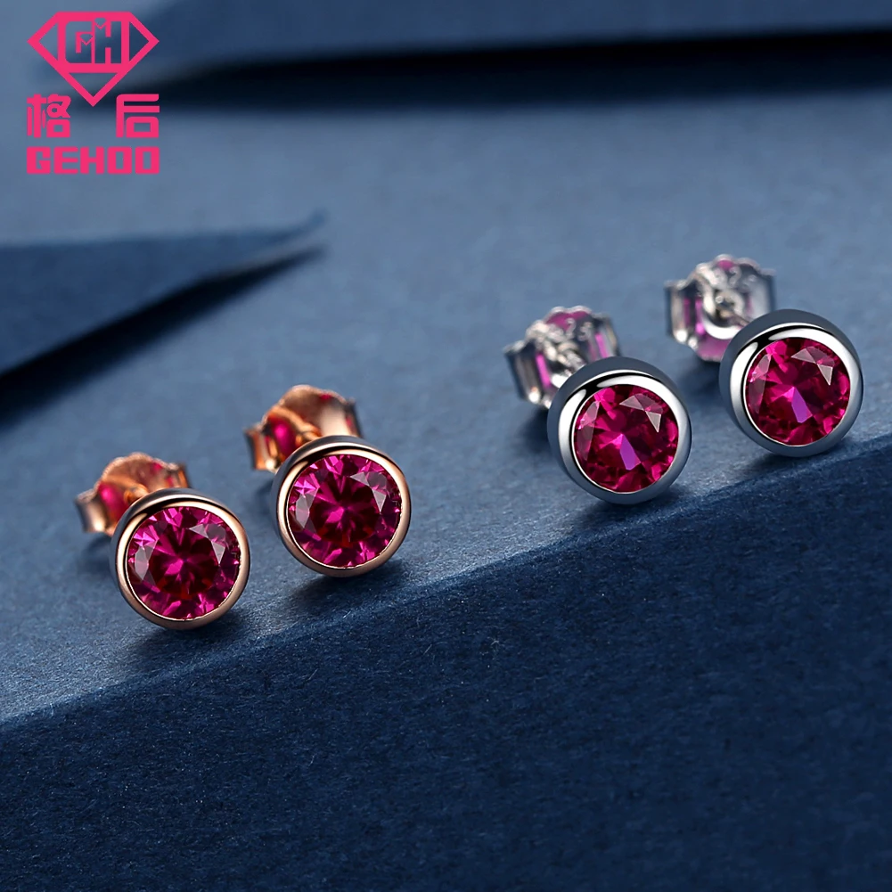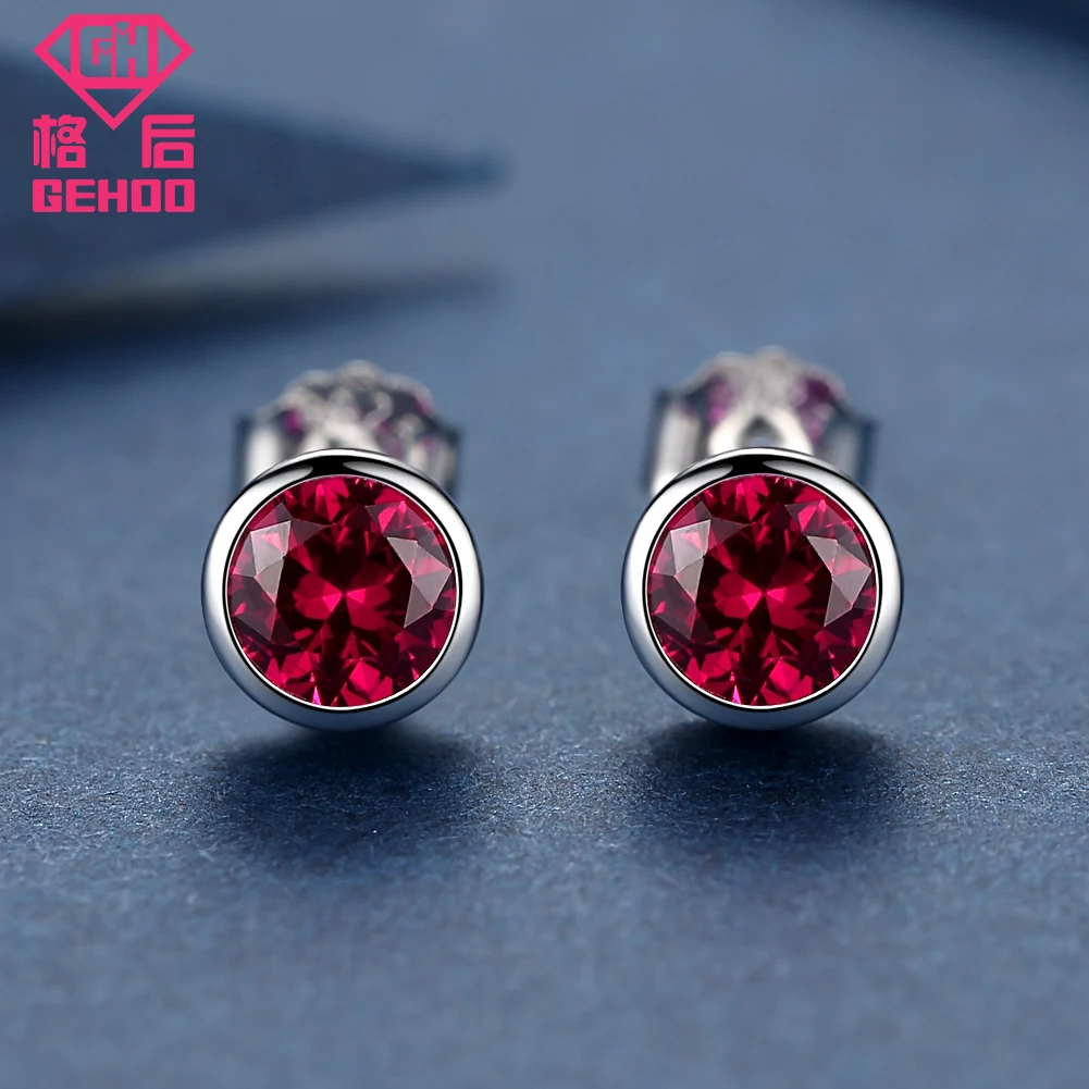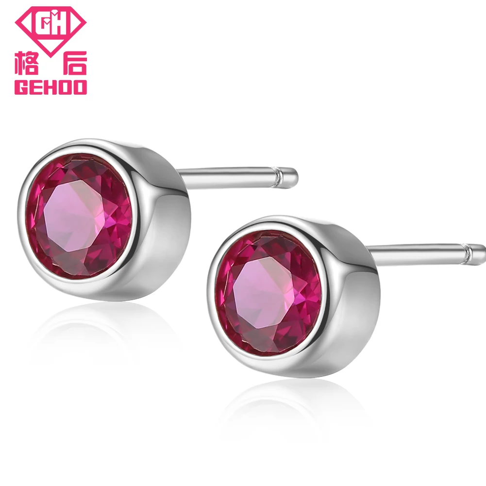 Solid 925 Sterling Silver Women Ear Fine Jewelry Round Red Ruby Earrings Stud Gift Vintage Charm Earrings Wedding Brinco