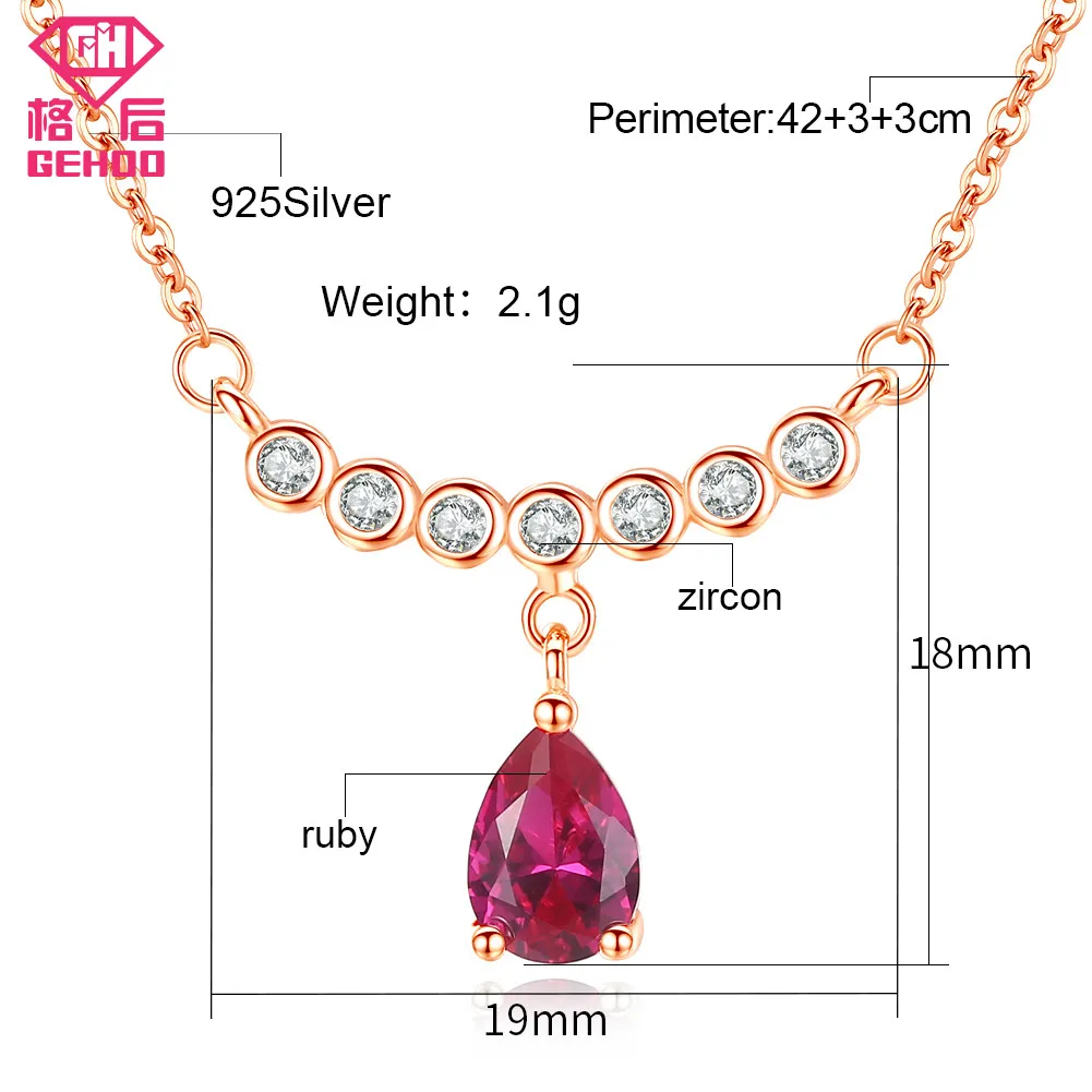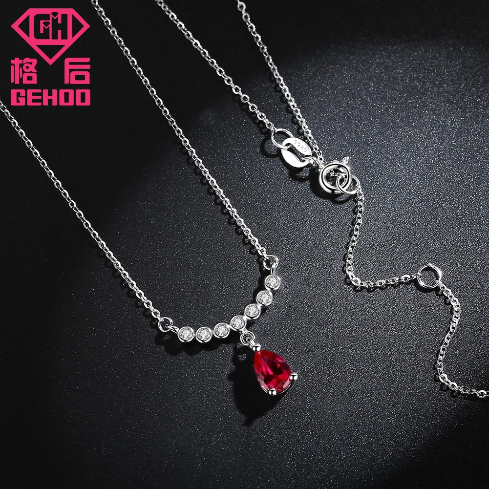 Vintage Women Wedding Jewelry Red Stone Ruby Water Drop Zircons Pendant Necklaces Charm 925 Sterling Silver Collier Femme