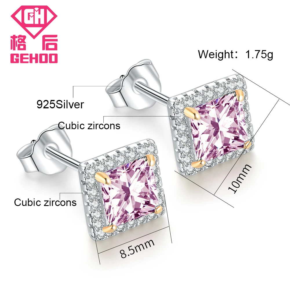 Women Ear Jewelry 925 Sterling Silver Trendy Square Design AAA Zircon Stud Earrings Charm Earring Birthd Gifts Brinco