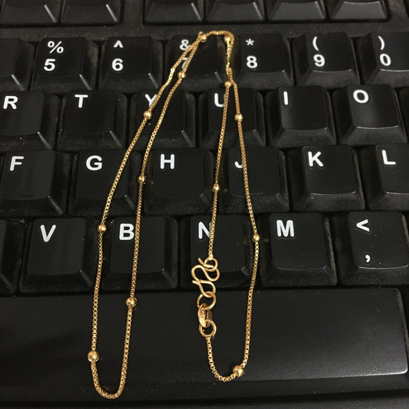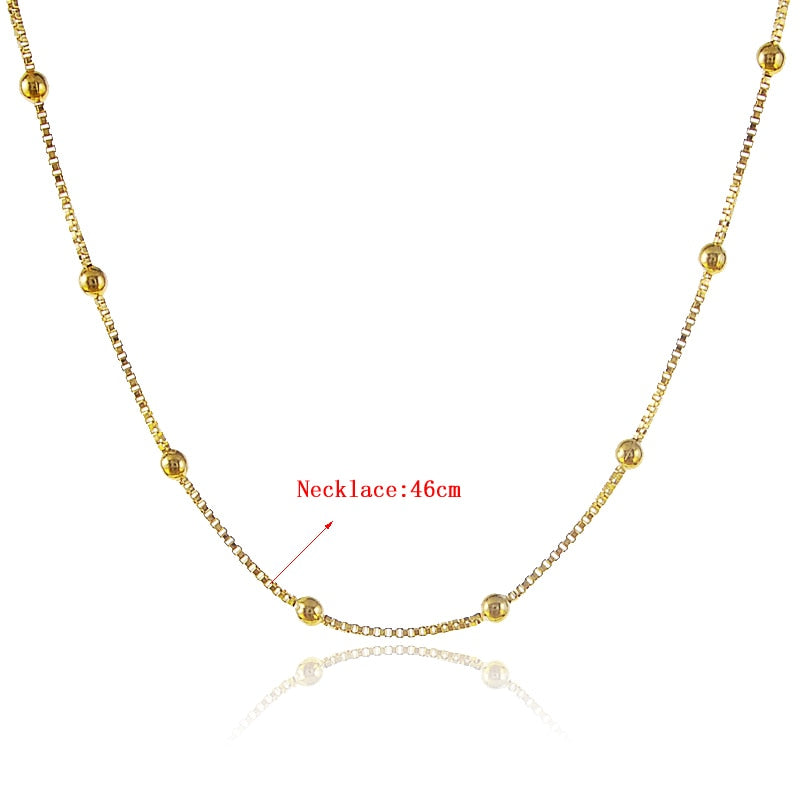 Genuine 24K Gold Necklace Plating Gold 45CM Box Chain Beaded Necklace Short Chain For Woman Charm Jewelry