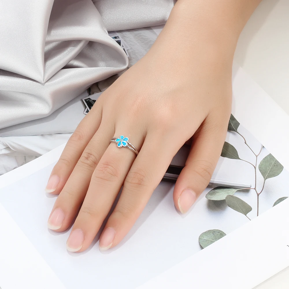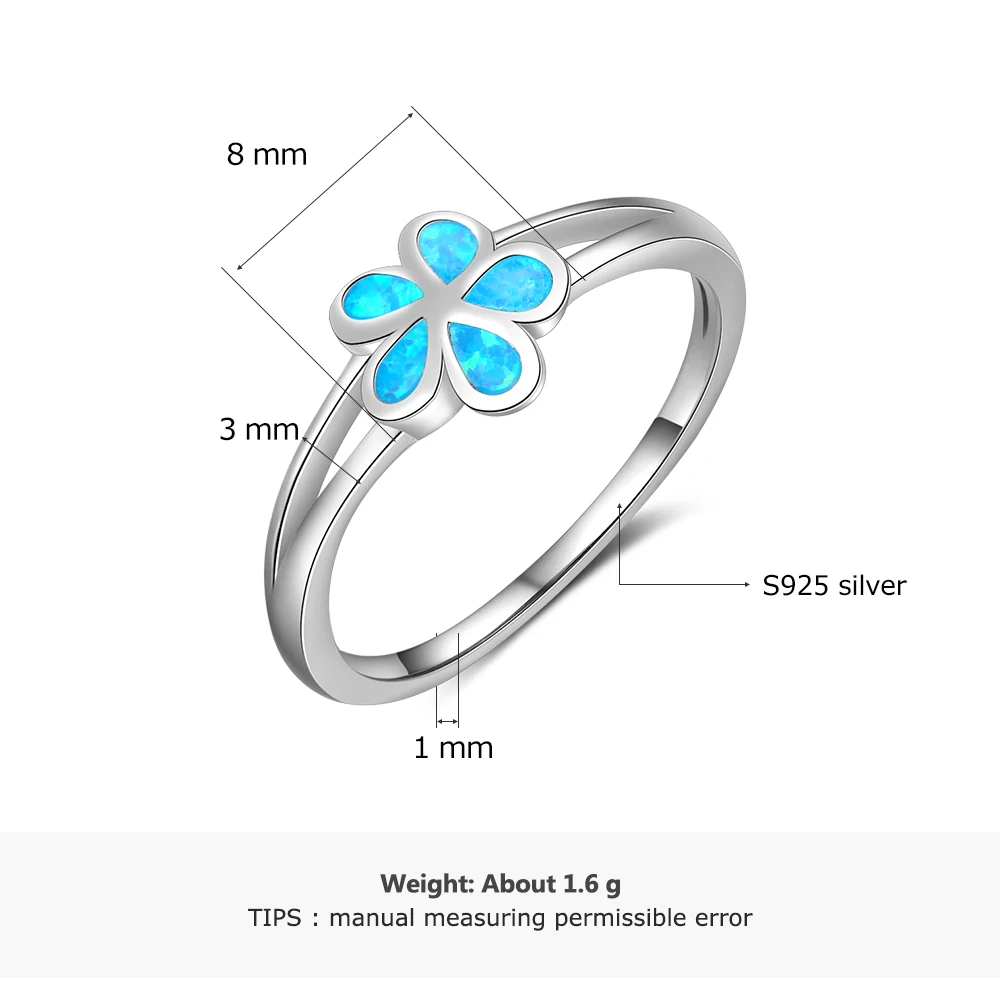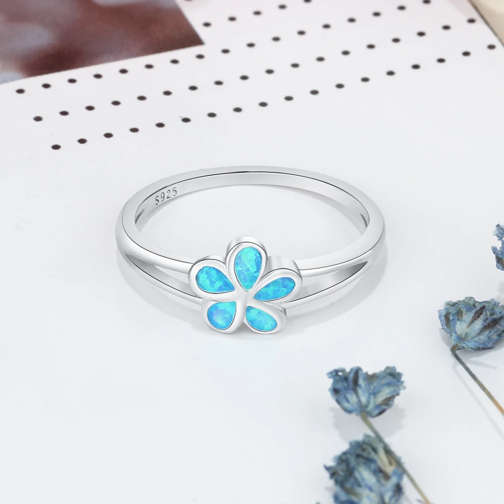 Genuine 925 Sterling Silver Flower Rings for Women Created Blue Opal Engagement Ring S925 Silver Fine Jewelry (Lam Hub Fong)