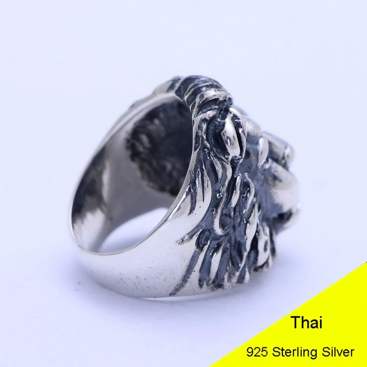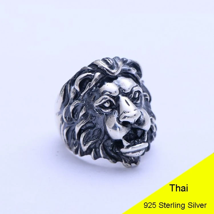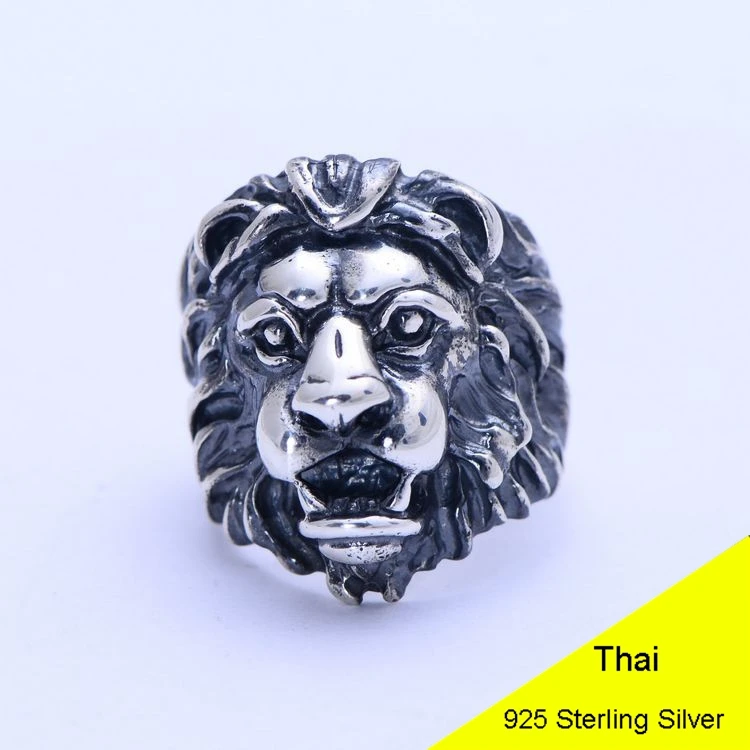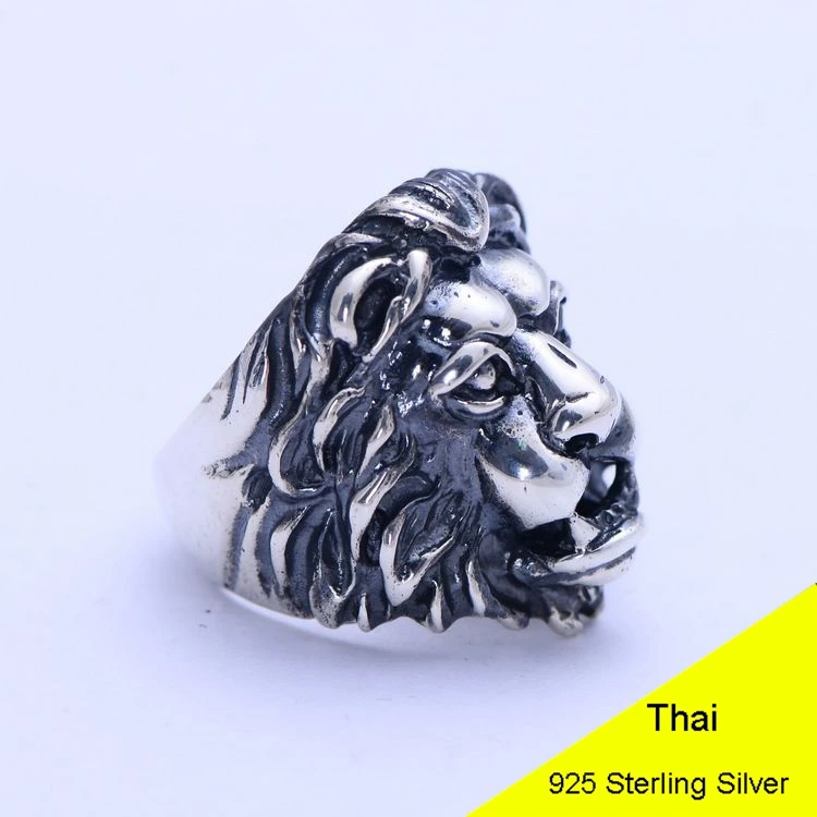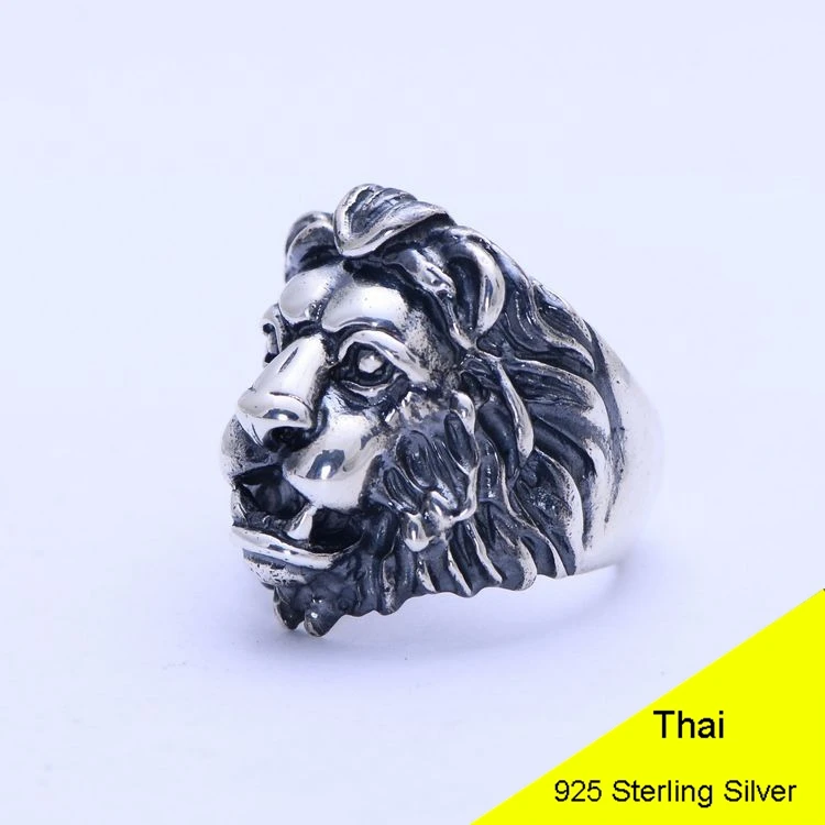 Genuine 925 Sterling Silver Retro Men Male Animal Lion Head Ring Thai Silver Fine Jewelry Gift Finger Ring CH056063