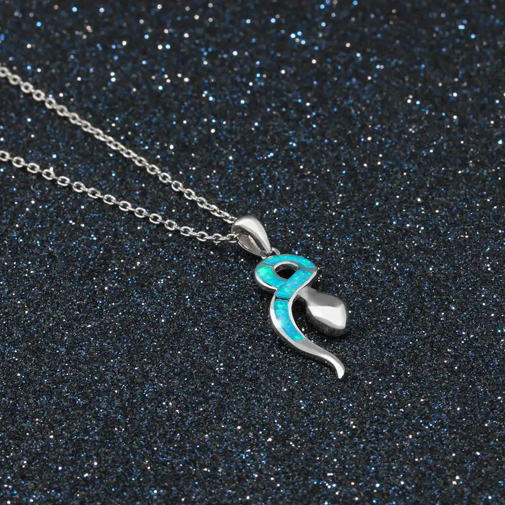 Genuine 925 Sterling Silver Snake Pendant Necklace With Blue Opal Stone Trendy Chain Necklace Christmas Gift (Lam Hub Fong)