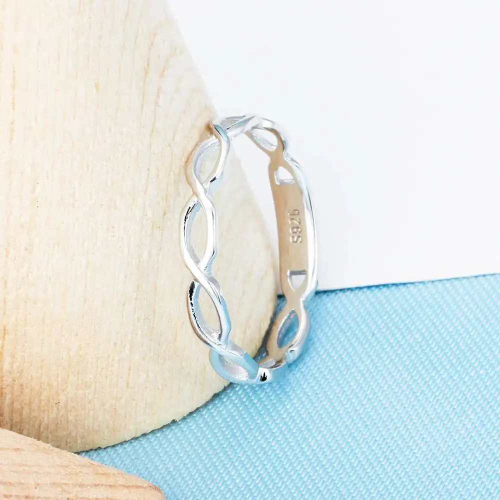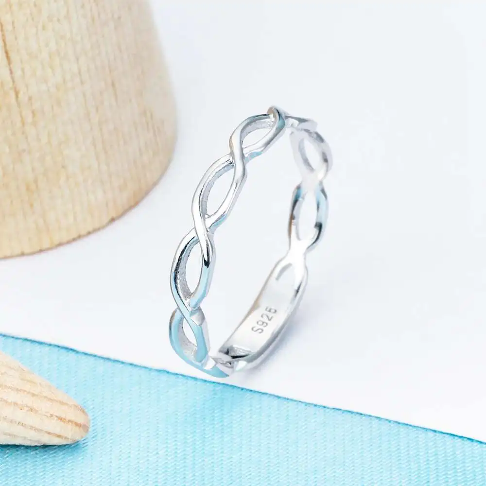 Genuine 925 Sterling Silver Twisted Design Rings Simple Infinity Endless Love Finger Ring Jewelry Gifts For Woman (Lam Hub Fong)