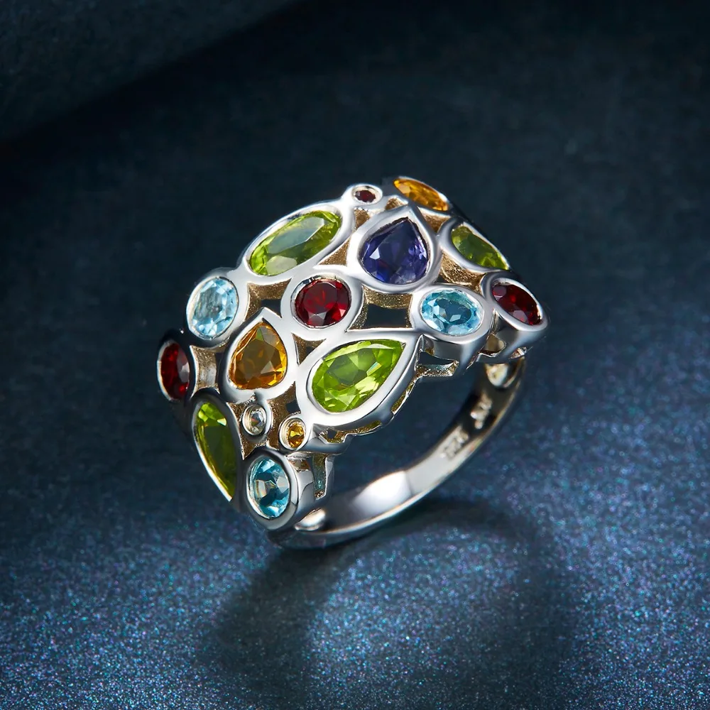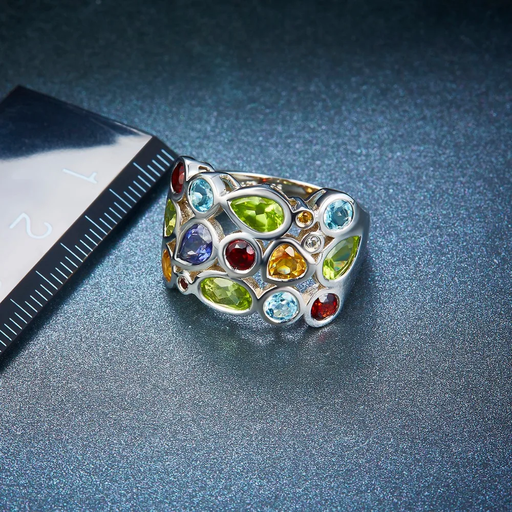Hutang Multi Gemstone Jewelry Genuine Topaz Garnet Citrine Solid 925 Sterling Silver Cluster Ring For Women Fine Jewelry Gift