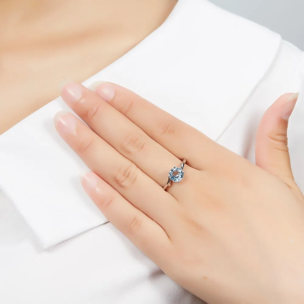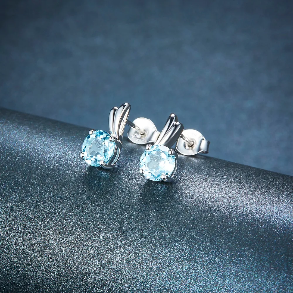 Genuine Jewelry Sets Sky Blue Topaz Solid 925 Sterling Silver Wing Ring & Pendant & Earrings Natural Fine Gemstone Jewelry Gift