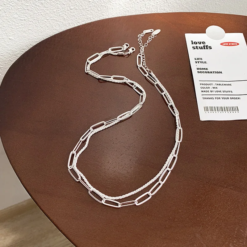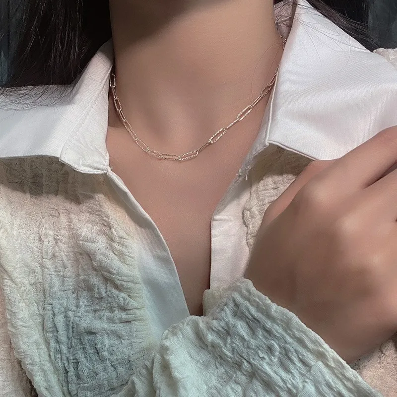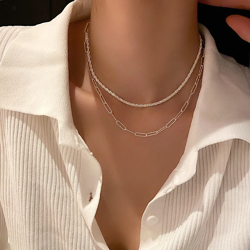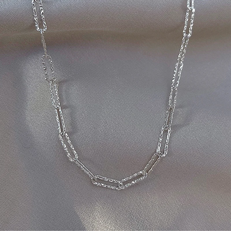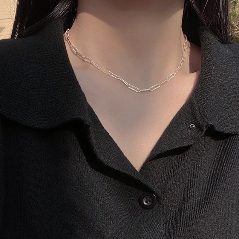 Geometric Rectangle Choker Silver Necklace Bright Flash Chain Fine Jewelry Women Clavicle Chain for Wedding