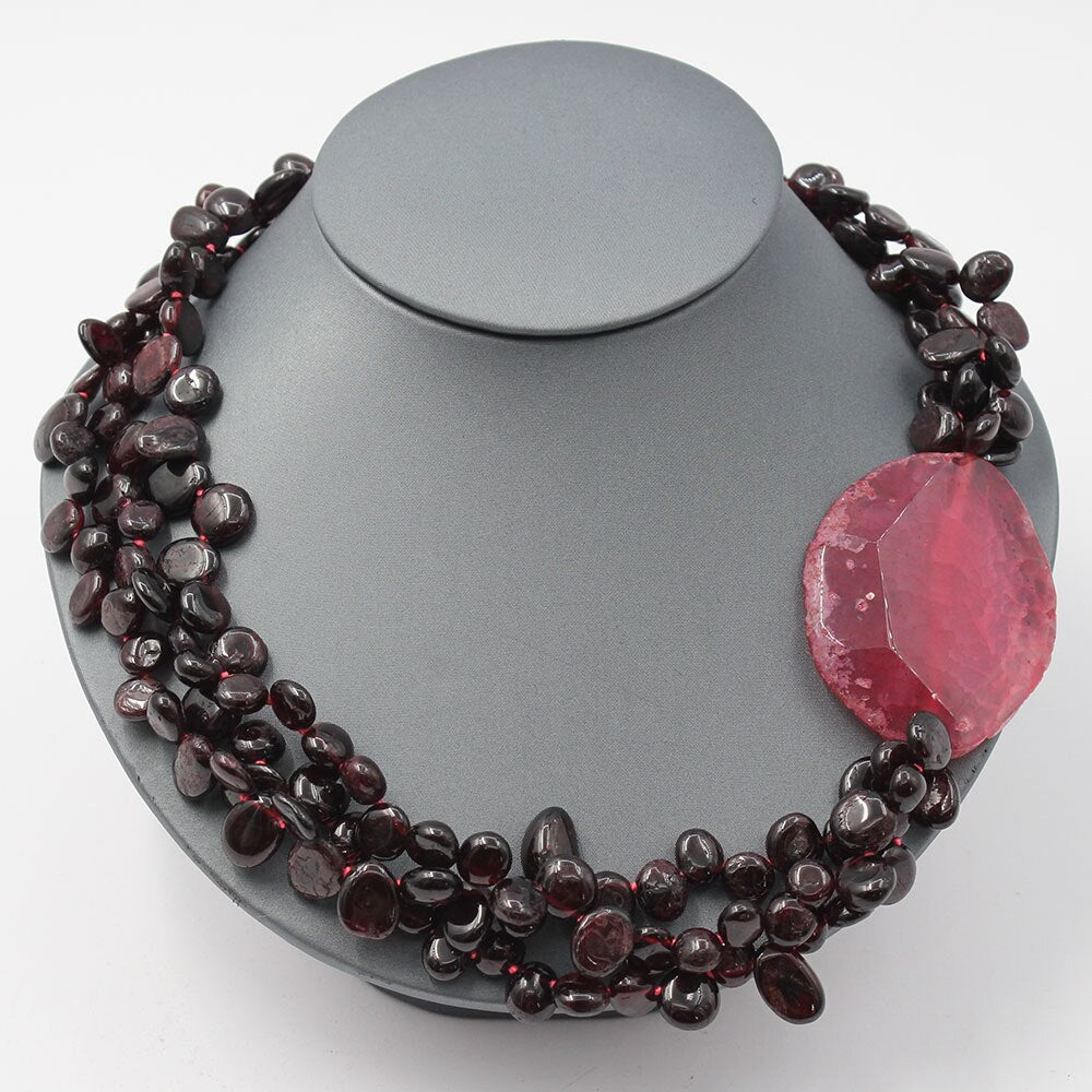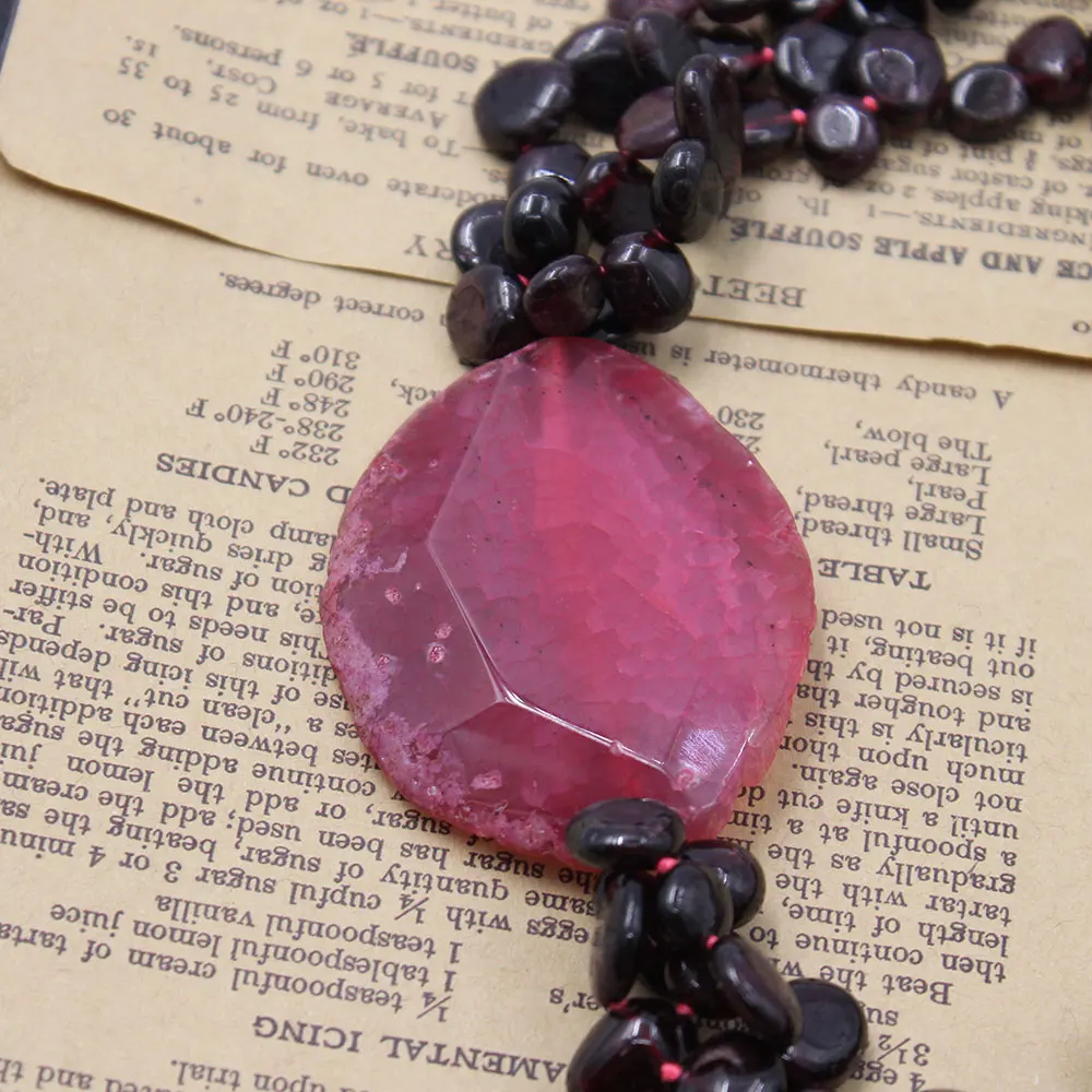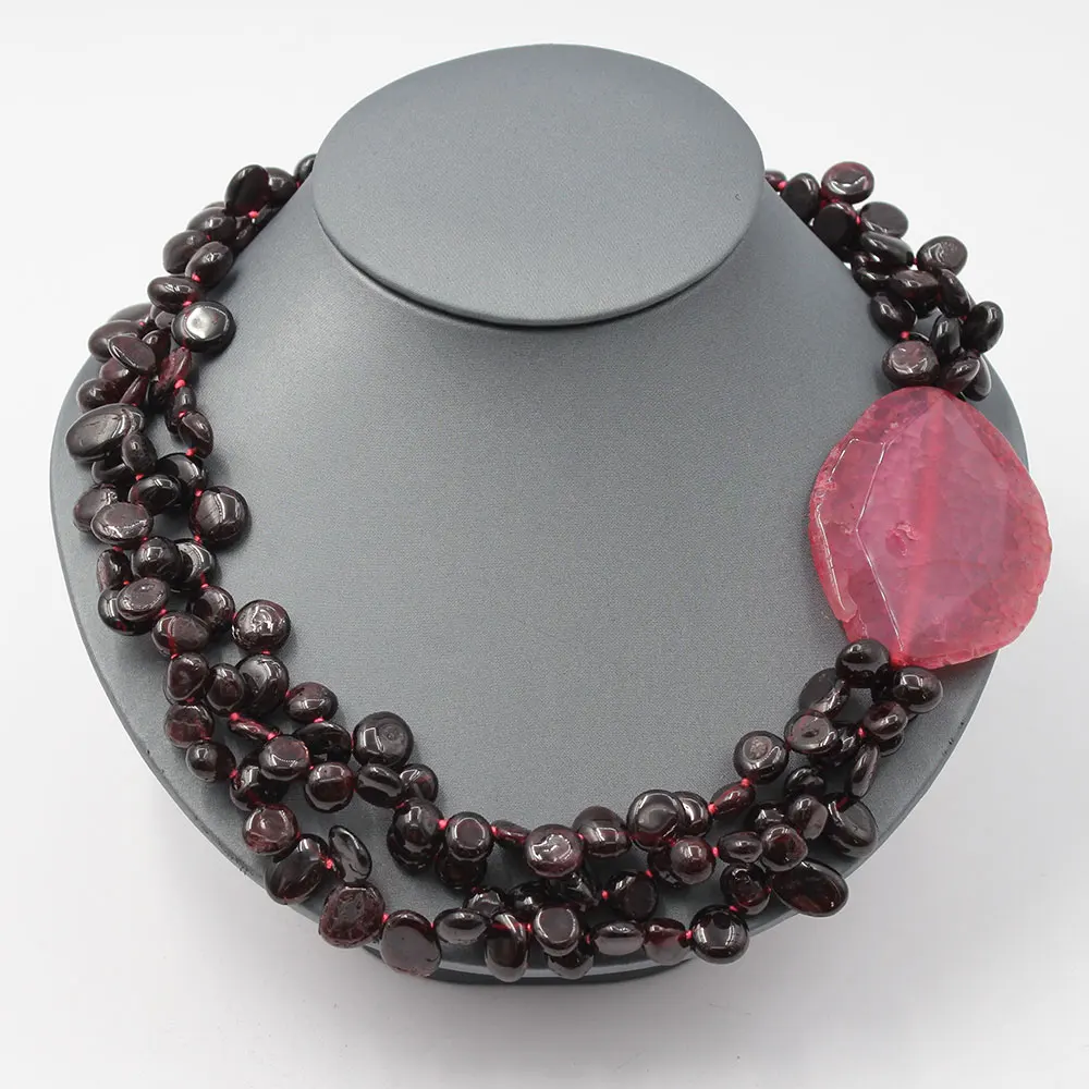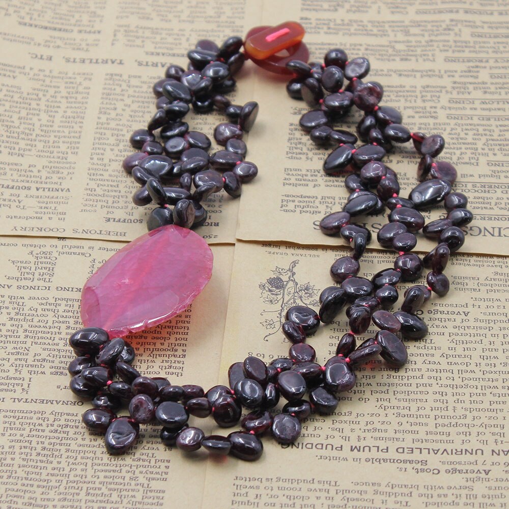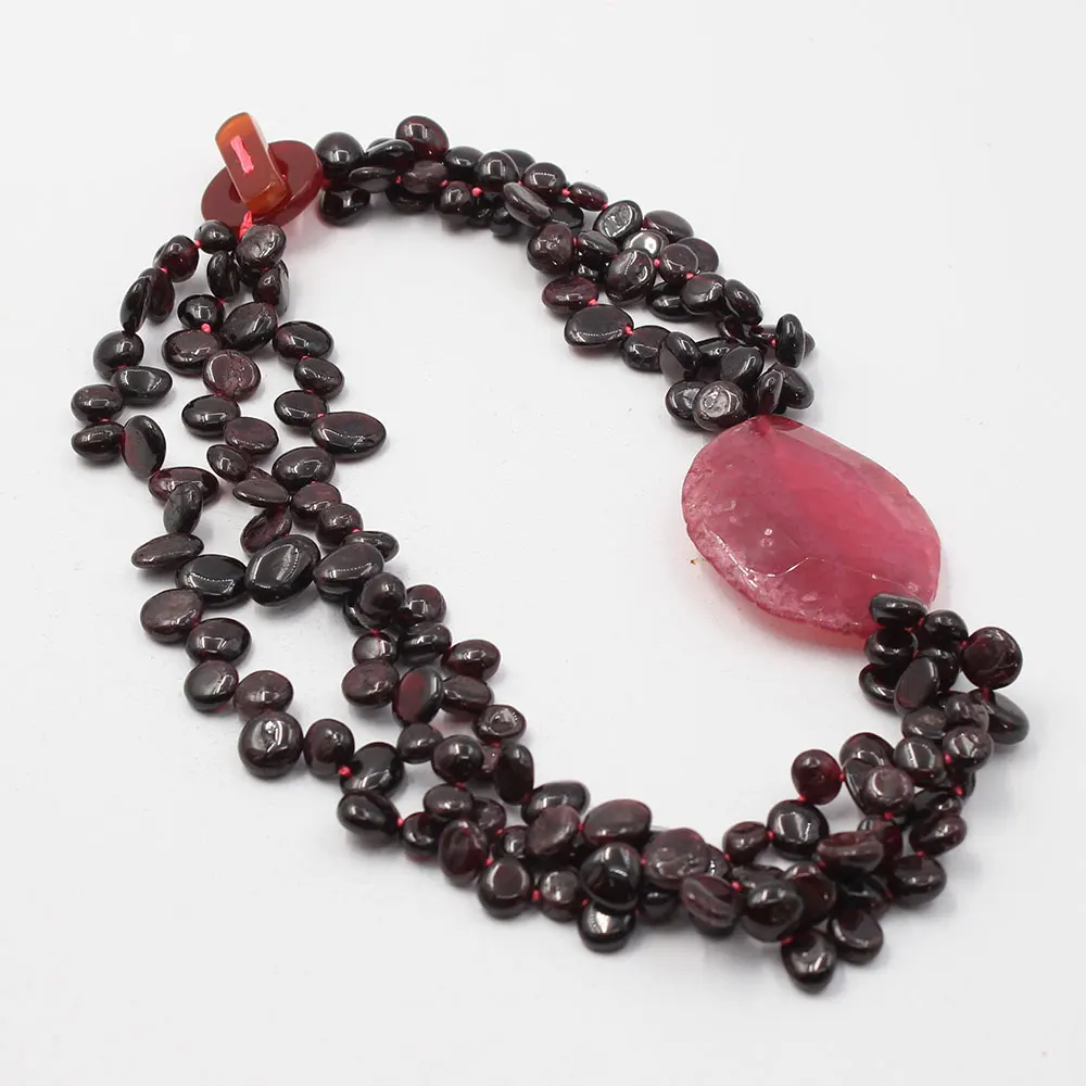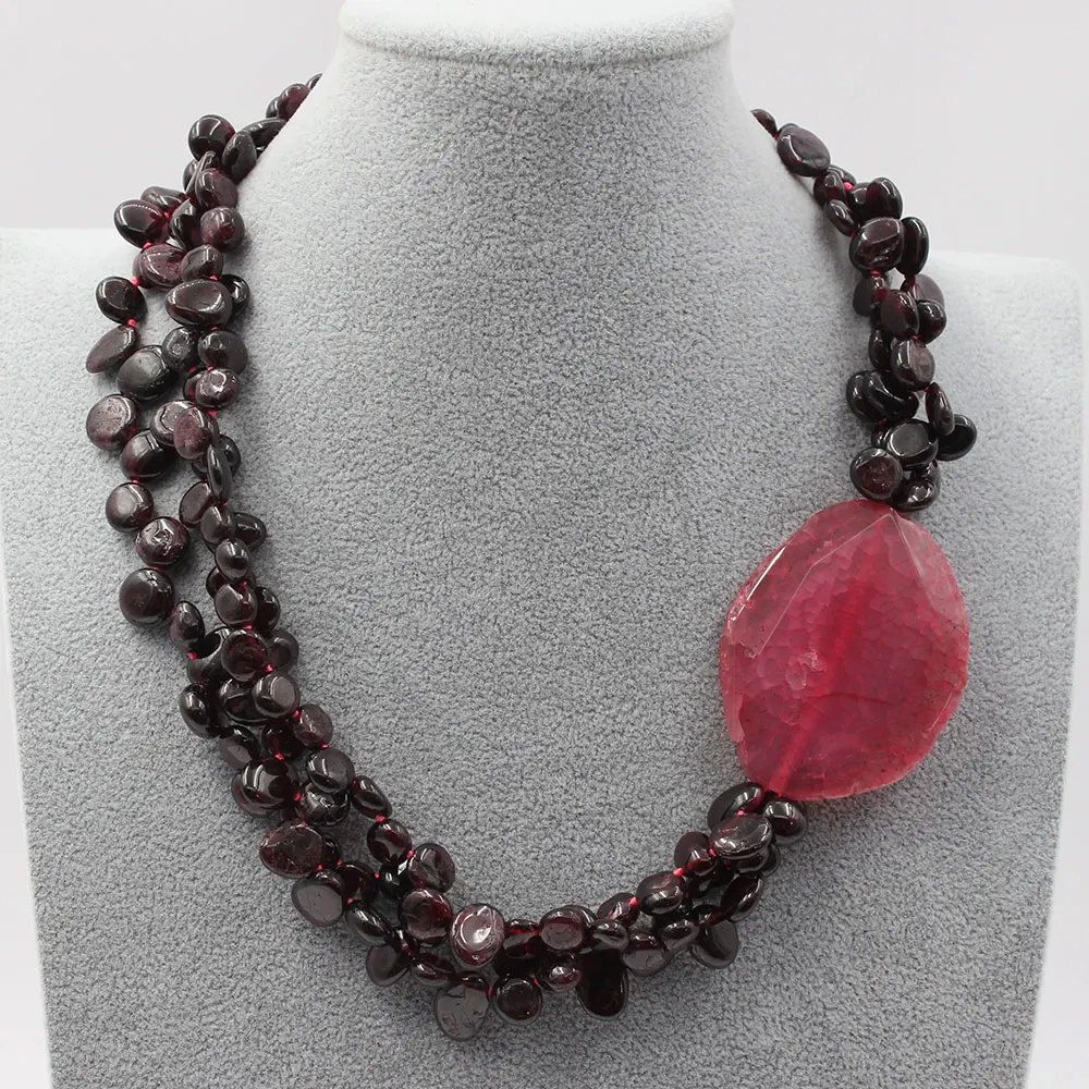 GG Jewelry 3 Strands Natural Garnet Nugget Beads Red Agate Chunk Pendant Necklace Handmade For Women
